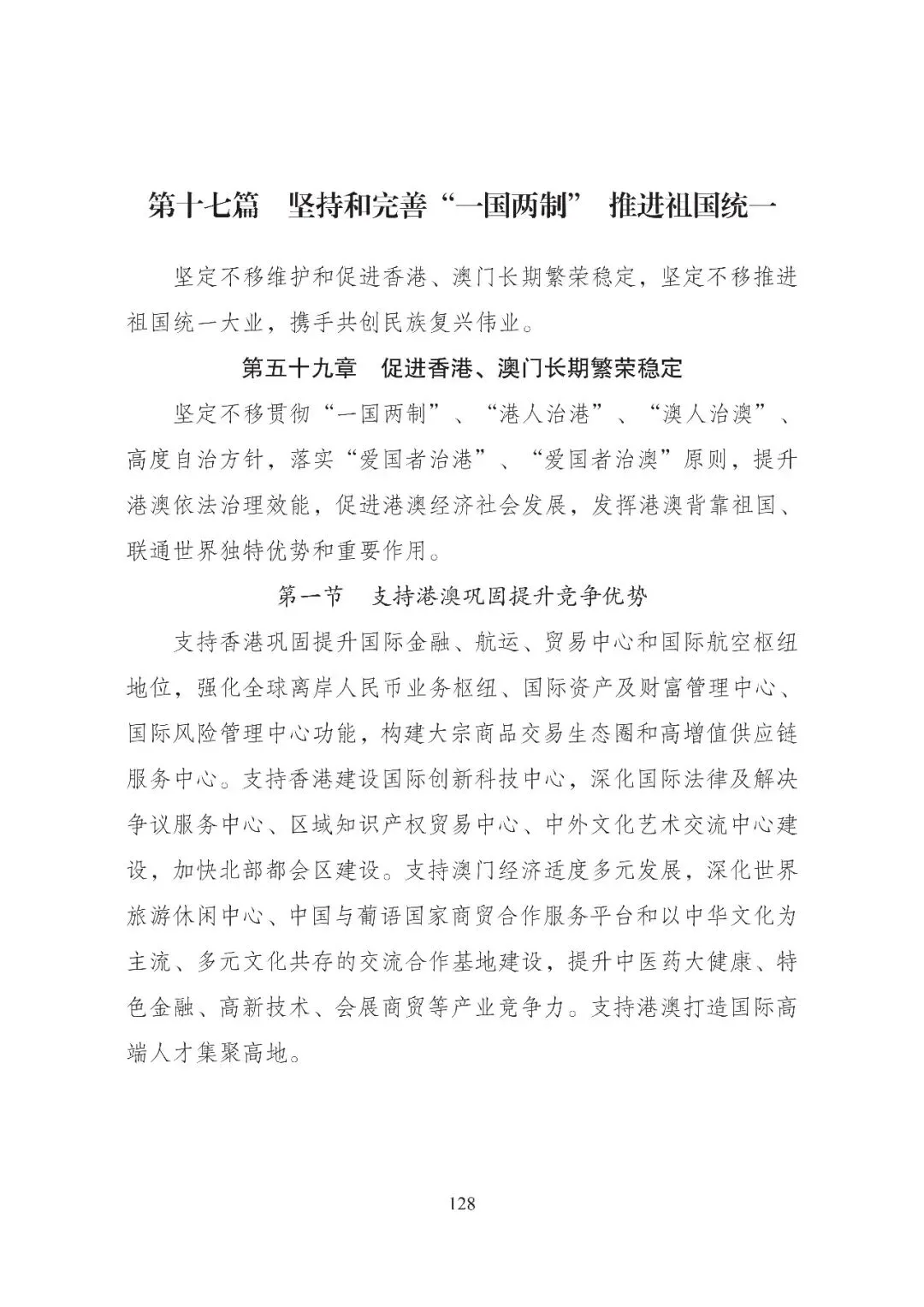 第五十九章 促进香港、澳门长期繁荣稳定