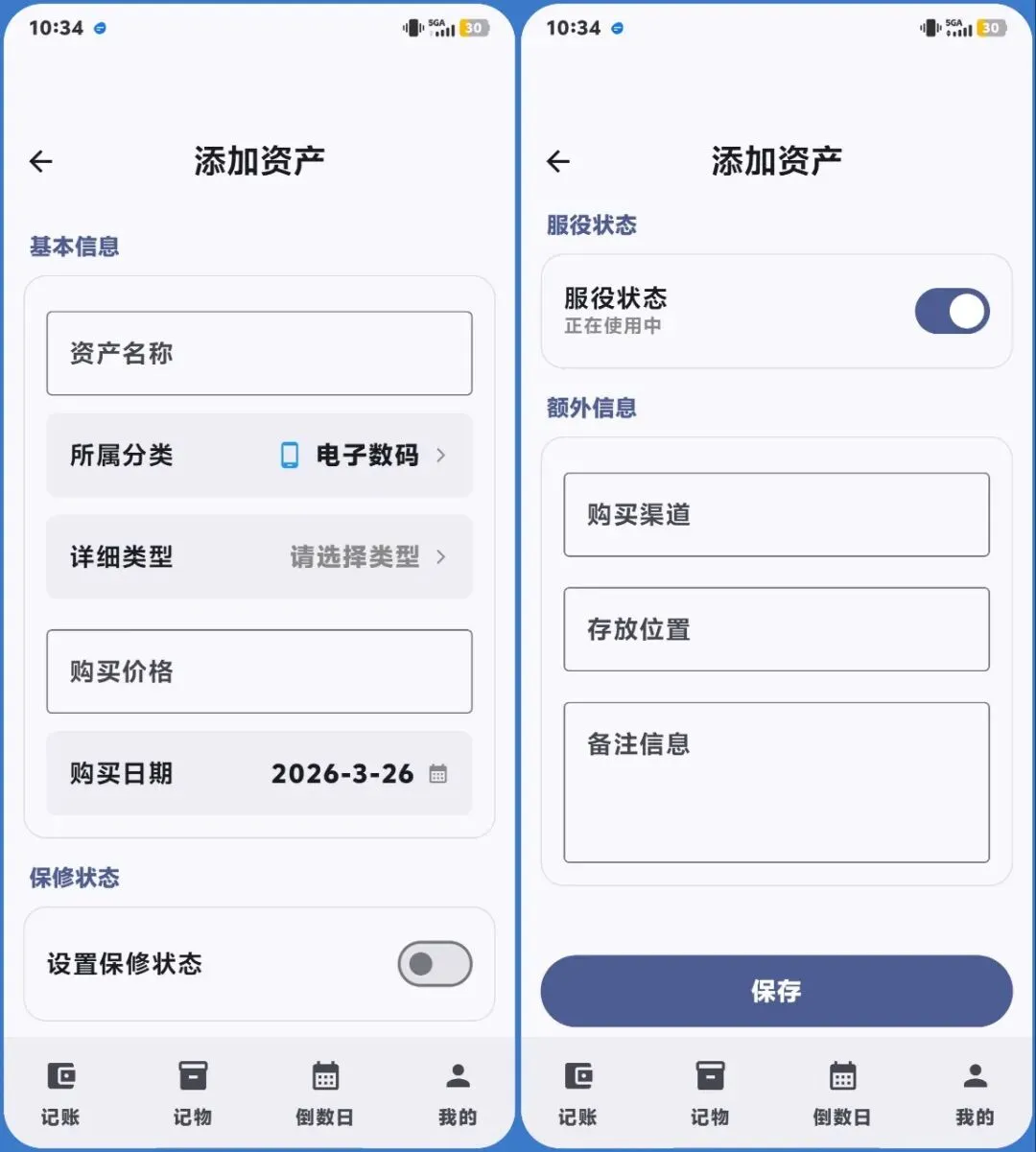 重要物品,登记在册。轻松填写物品名称、数量、存放位置和备注。