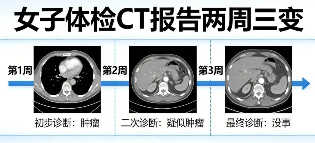 1. 女子体检CT报告两周三变,从肿瘤到没事,险白挨一刀