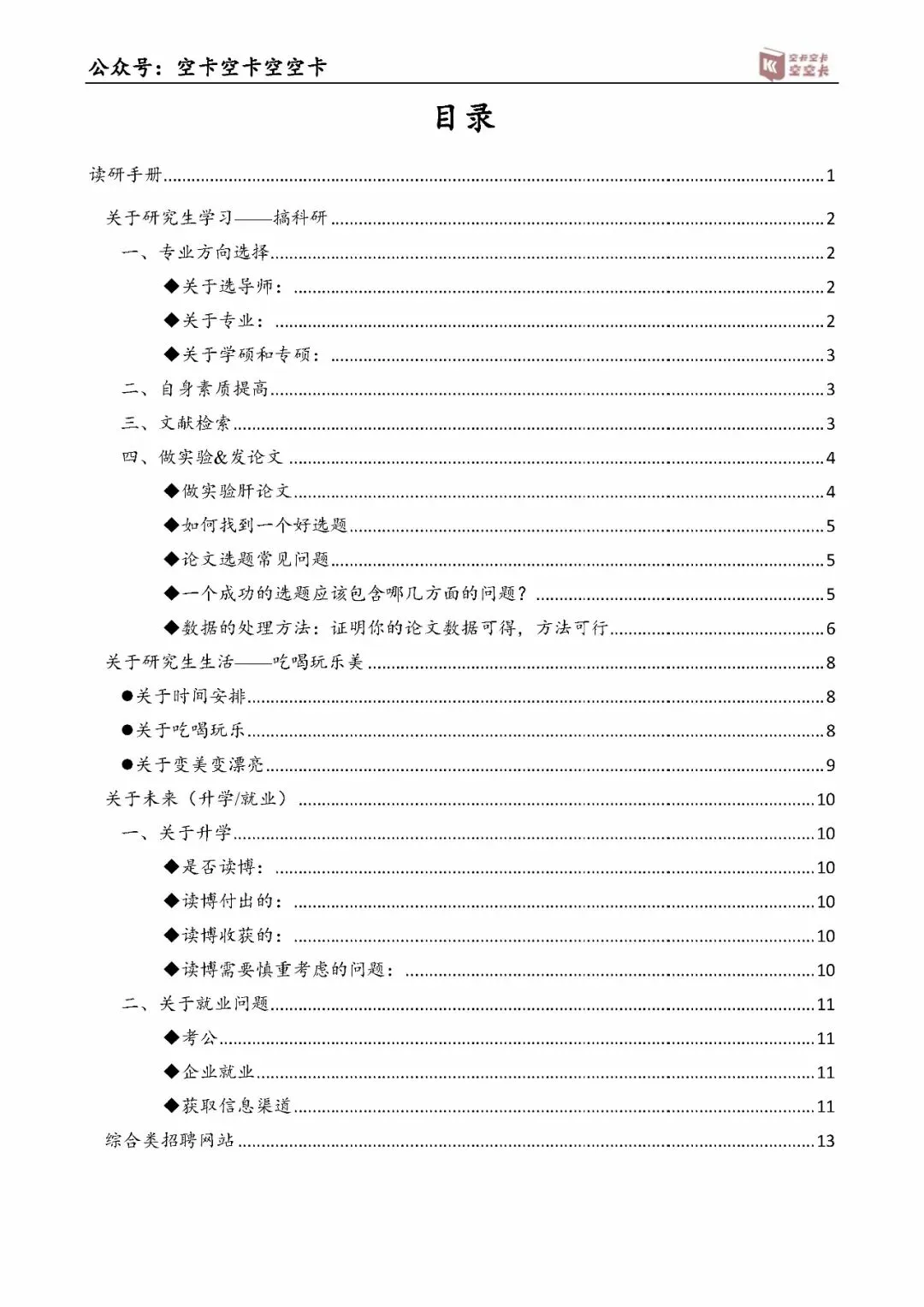 这个手册是我找了清华、北大、人大、中科院、华科的一些同学费时半个多月一起编写的读研精华。都是大家读研的真实经历,读研的血汗史
