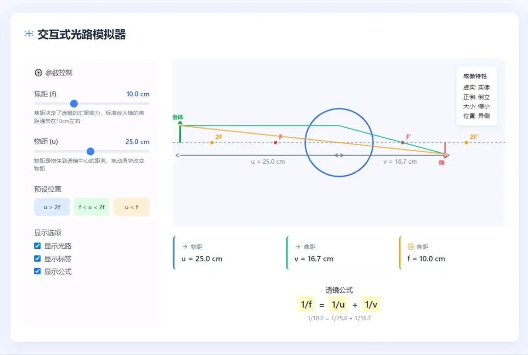 物理化学老师看过来!凸透镜成像、杠杆原理这些实验,用豆包能快速生成模拟动画,参数还能自己调,比静态图好懂多了。动画还能下载到本地,上课直接用,学生理解起来更轻松~