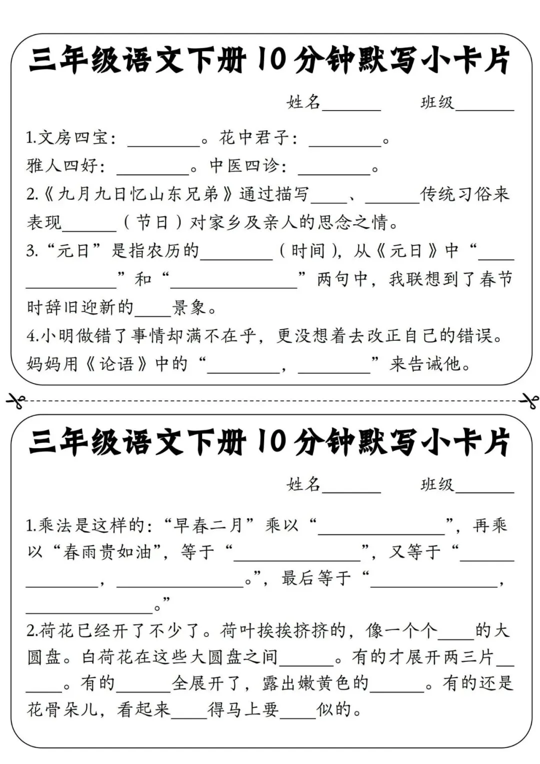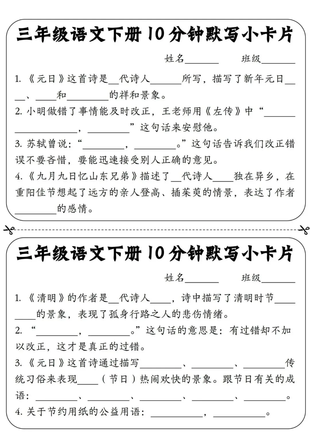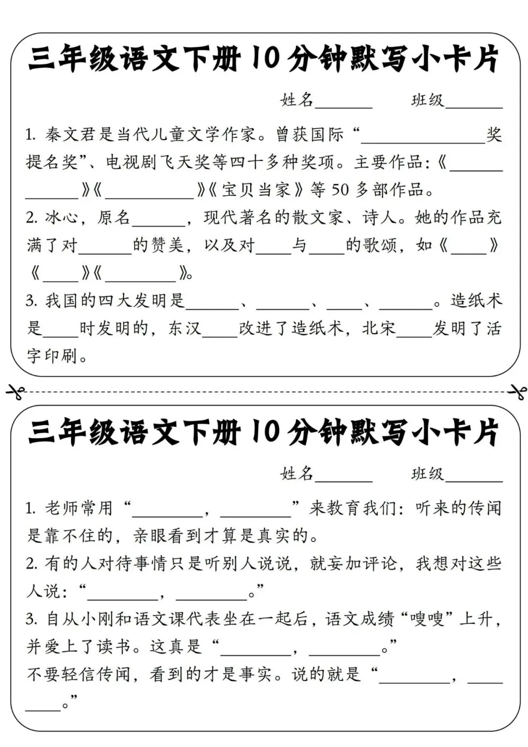【默写小单】三年级下册每日课内知识练习,可下载! 小语老师 课件|微课|朗读|试卷| 每课划重点 知识点总结 晨读晚默 词语默写单 看拼音写词语 课前预习卡 好文仿写练笔 生字手册 课课帖 生字帖练习1 生字帖练习2 生字帖练习3 ❗❗❗ 温馨提示:高清图片打印或拉到文末下载电子档 ▼资料高清无水印,全8页, 展示前5页练习▼ △因篇幅有限,只展示部分资料截图△ 声明:本公众号尊重原创,素材来源网络,好的内容值得分享,如有侵权请联系删除。更多资料请点击“中小学各学科上下册空中课堂、微课汇总”。 ▼ 下载完整版方式 ▲扫码关注小语老师 在公众号消息框(后台) 回复:401 资料下载视频讲解(点击观看) ↓↓↓ 点击下方『阅读原文』三年级下册语文资料合集
