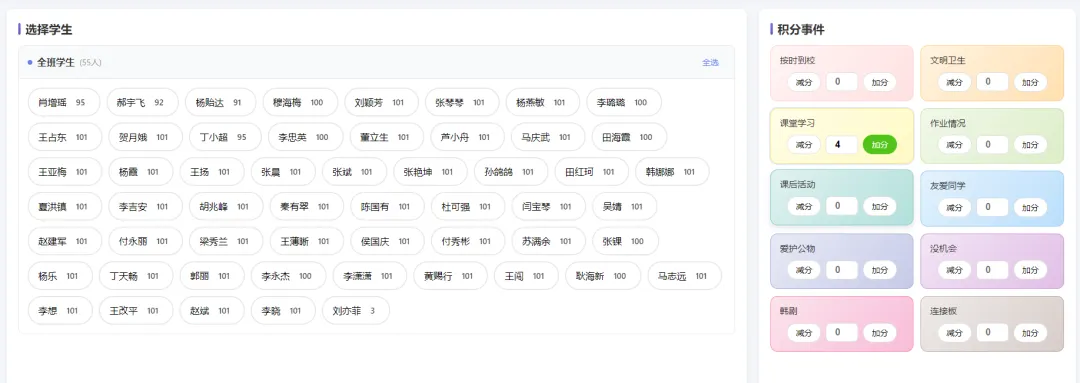 想要宠物园运行起来,首先是要在积分端操作,可以根据学生的各项表现,给学生加分,可以单独给个人加分,也可以批量给小组加分,全班加分,都是运行了几年的功能,稳定高效,老师们可以放心使用。