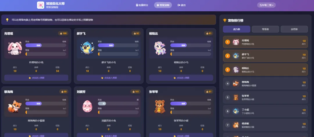 班级电子宠物攻略,你想要的小程序版,电脑版,网页版,老师家长学生都能用