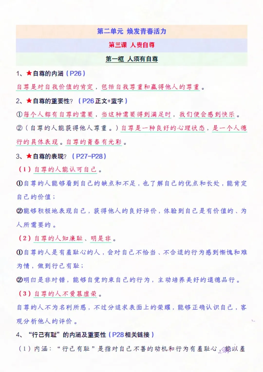 今日老师为大家整理了:七年级下册道德与法治全册知识点(最新版)电子版可打印
