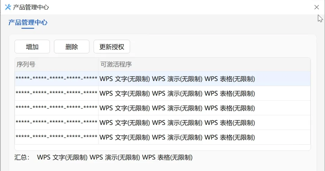 打开任意一个,在产品管理中心会看到——无限制使用状态。不弹窗、不灰菜单、不让你扫码。