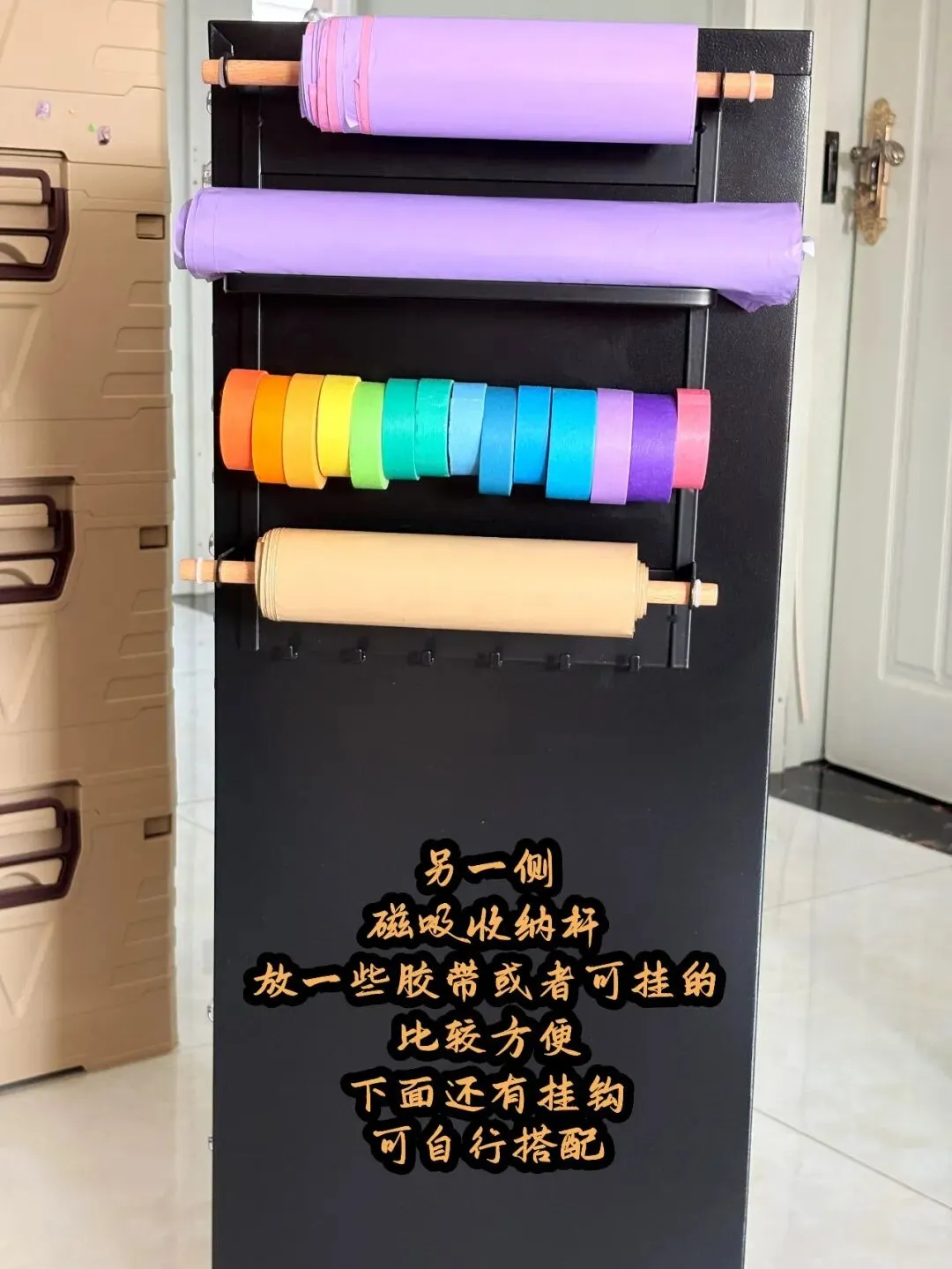 🔹 右侧:磁吸收纳杆+挂钩·固定耗材规整区