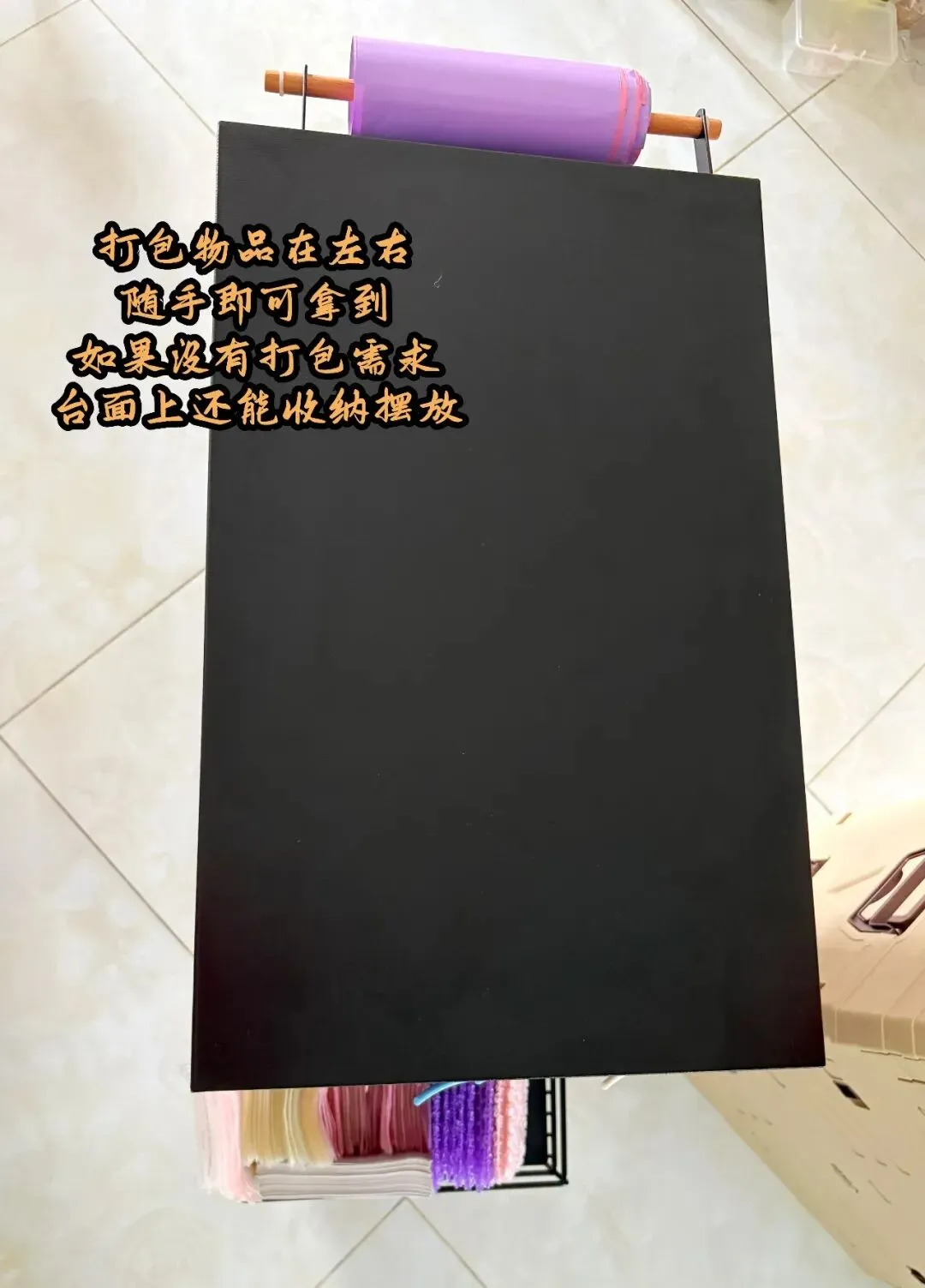 柜顶大板面直接当打包台!打包时随手拿材料,不用再翻箱倒柜;不打包时,放成品展示、手工材料堆、创作工具都可,百变适配,空间利用率拉满~