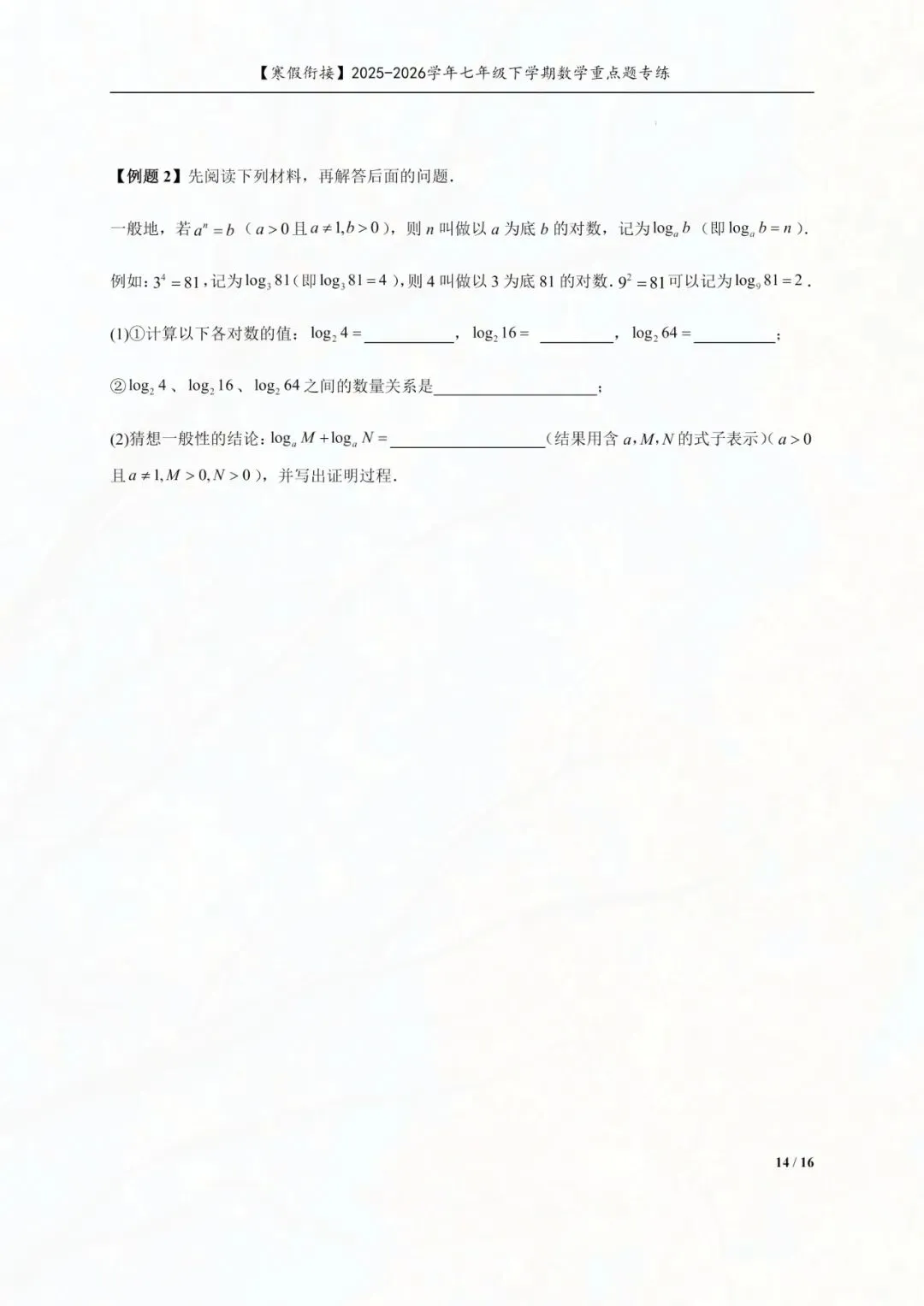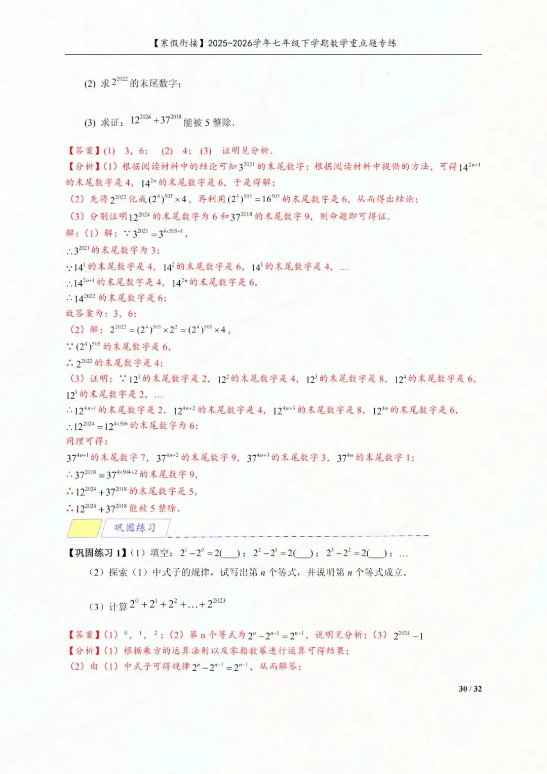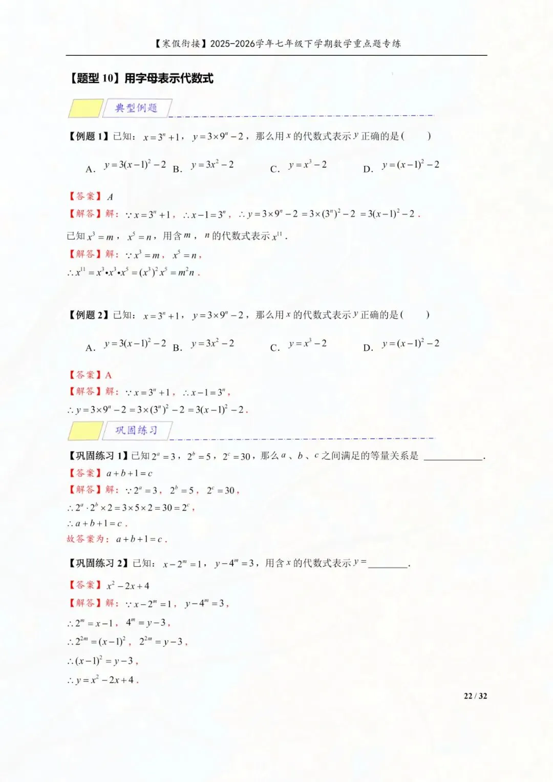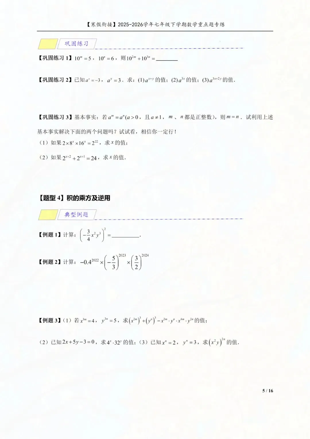 今天老师给大家整理了:七年级下册数学幂的运算重点专练电子版可打印!