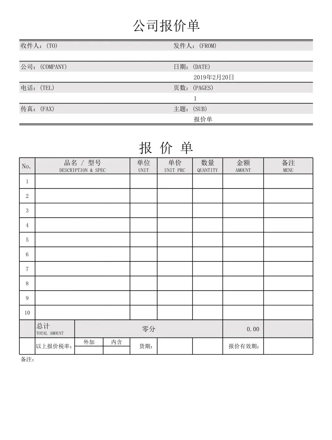 260+《报价单格式表》word|excel空白电子版,可免费下载修改打印