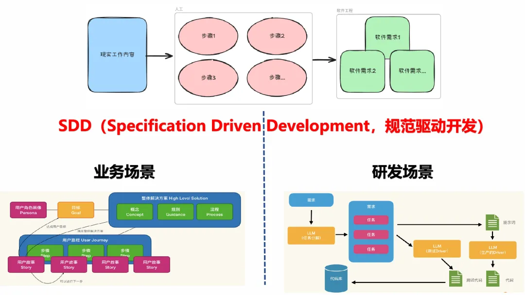 以前我们做软件工程,写规范、定流程、拆需求,核心是为了团队里的人能对齐认知,方便人和人之间的协作,本质上是“人服务于人”。