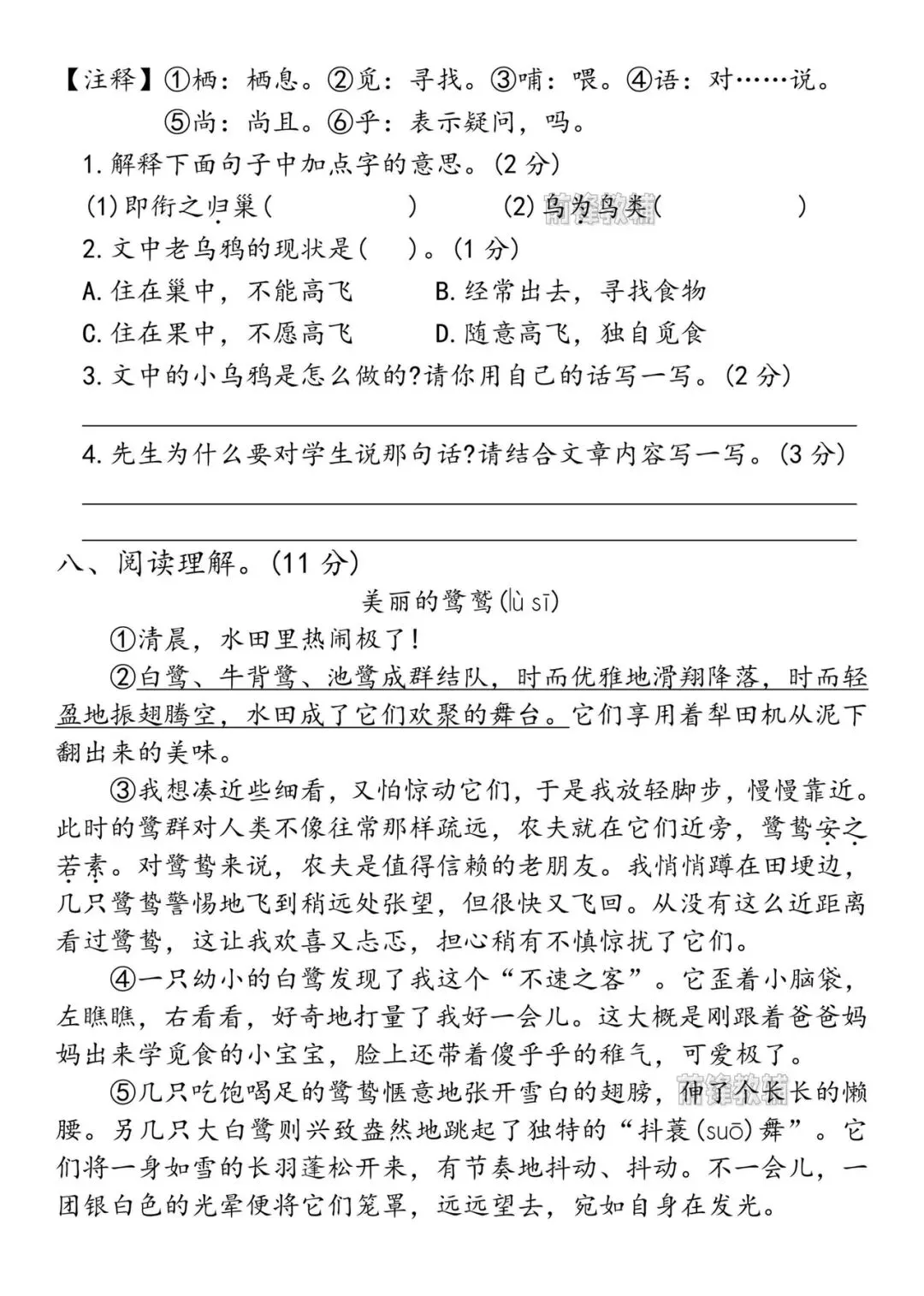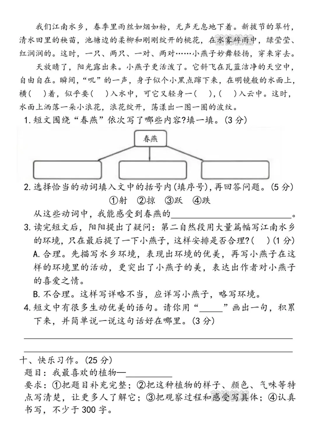 三年级下册语文第一次月考测试卷(共2套电子版附答案)