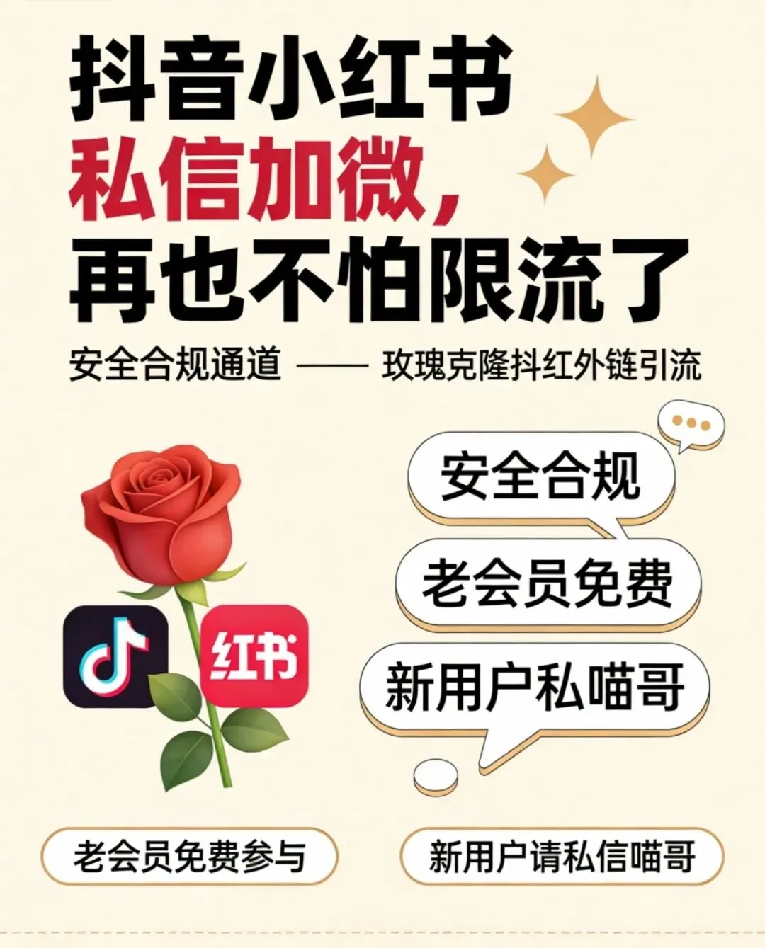 #玫瑰克隆 #抖红外链 #抖音引流 #小红书运营 #私域流量 #喵哥工具库