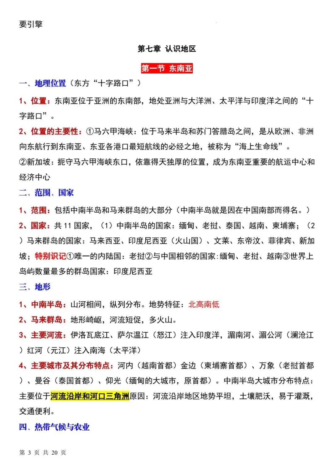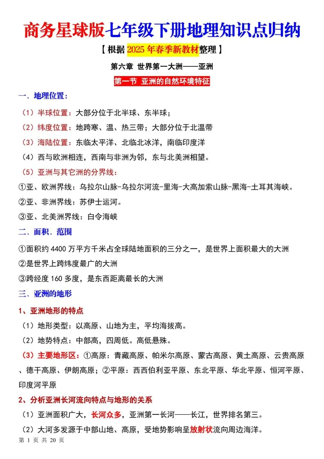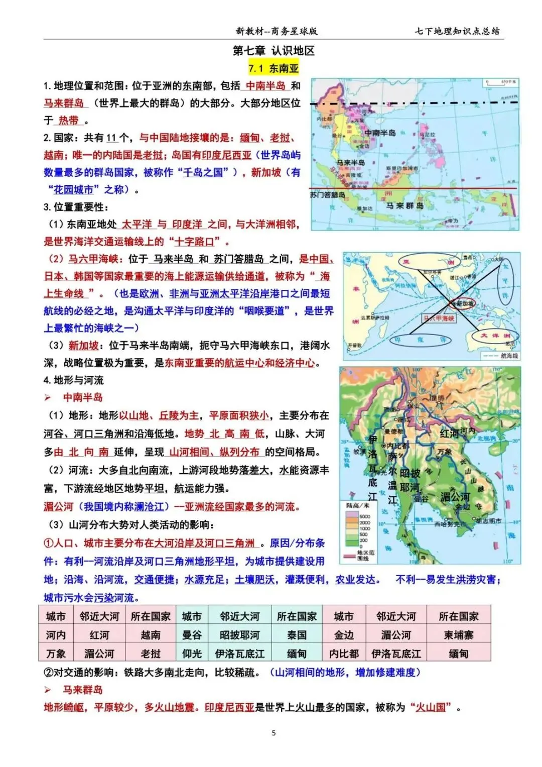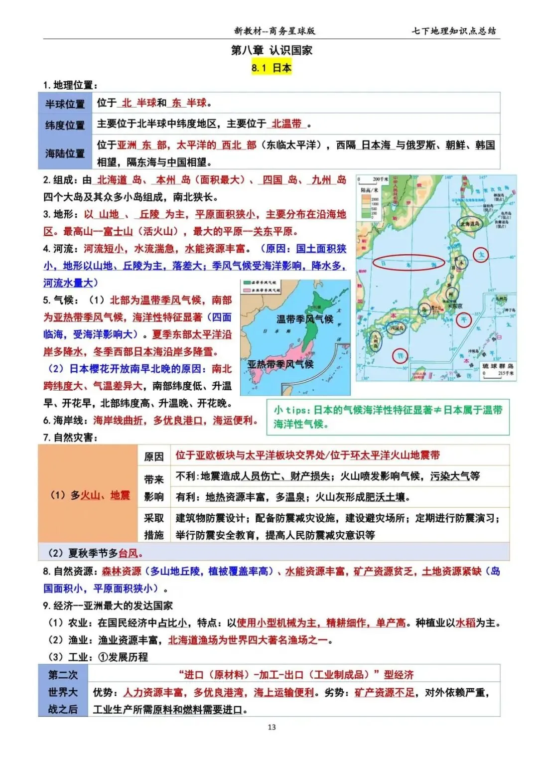 今日分享的是:商务星球版七下地理《知识点总结》,电子版可下载打印。