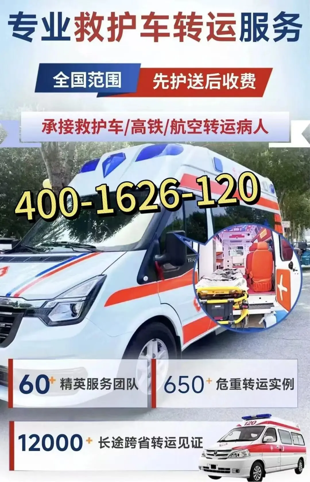 救护车出租转运电话:4001626120