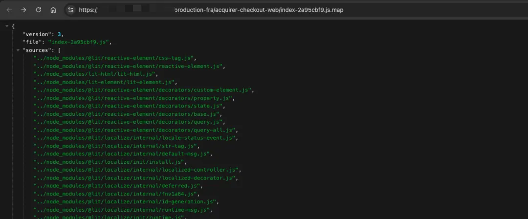 在 js 的后面增加 .map 后缀,返回的内容是这样的: