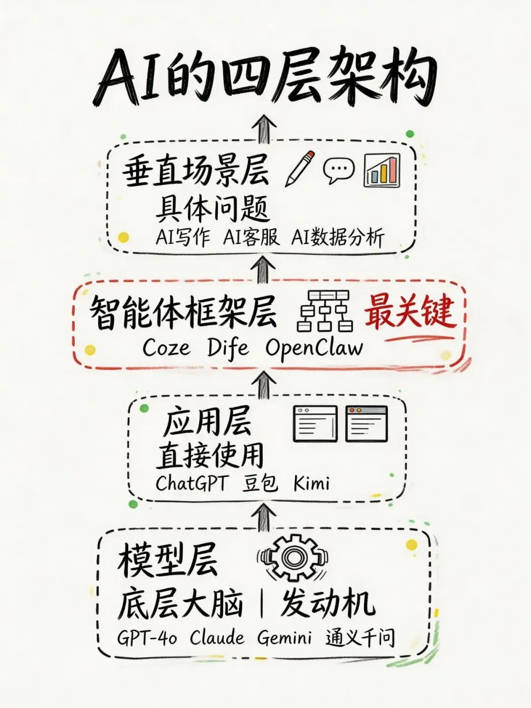 先花10分钟,把你已经知道的工具,按“模型层—应用层—框架层—场景层”分一下类。