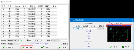 1:选择“命名、排序”,鼠标防止在排序方式下的色块,可调整图纸排序(例如:从左到右、从下到上···)。