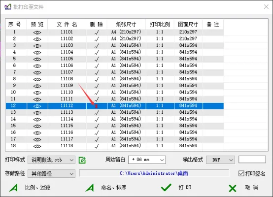 2:打印之前建议保持图面清洁,图框外尽量不要出现无用的矩形框。当打印的时候出现无用的图纸的时,鼠标放在✔上可以进行删除。