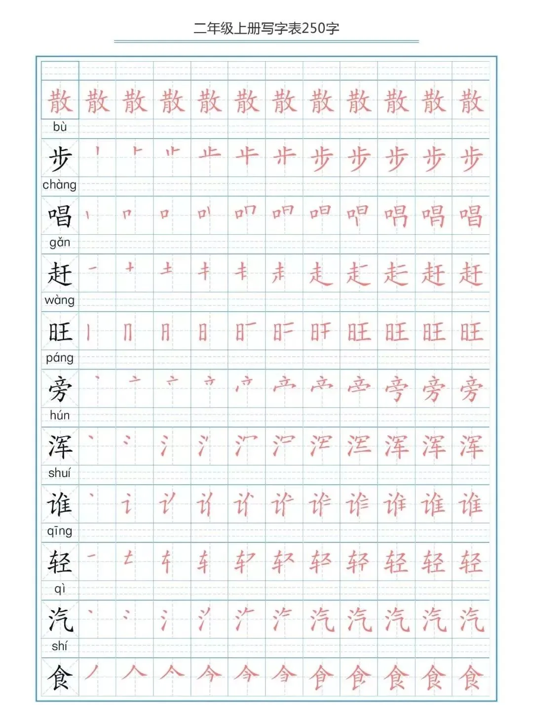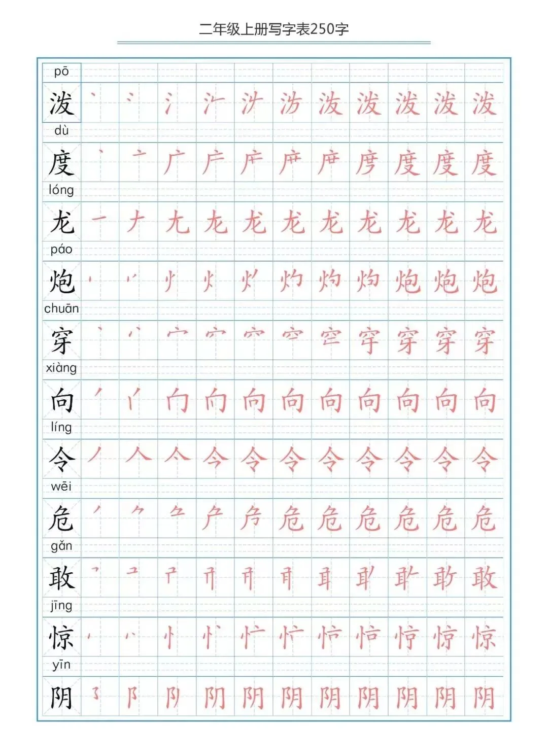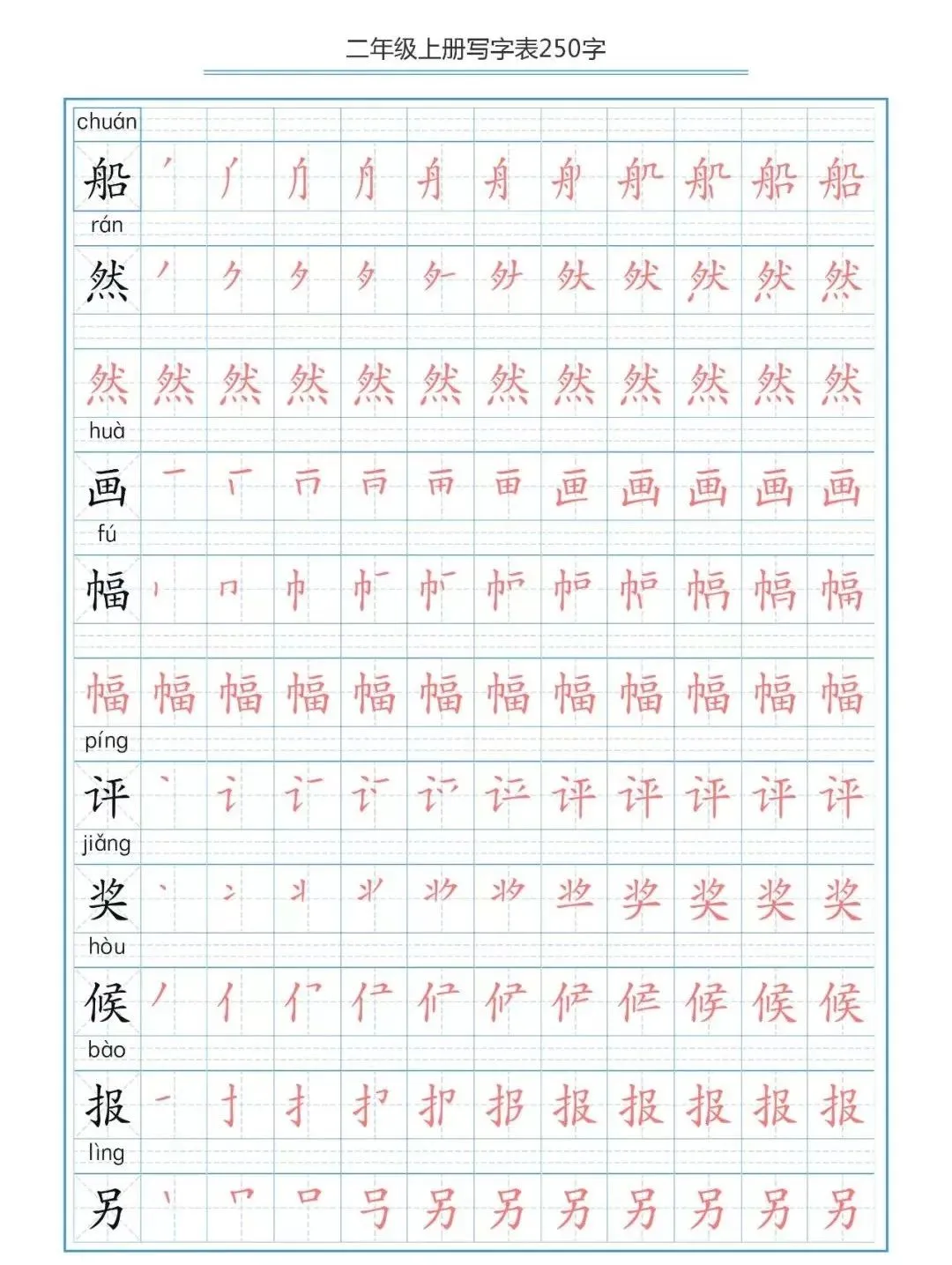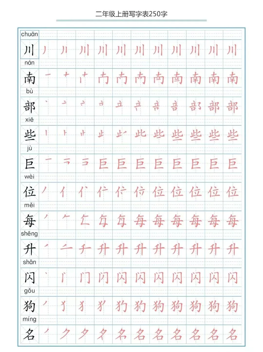 部编版二(上)生字笔顺分解练习(可下载)