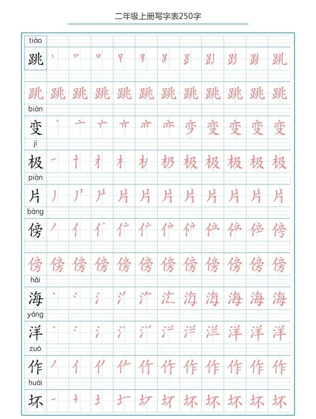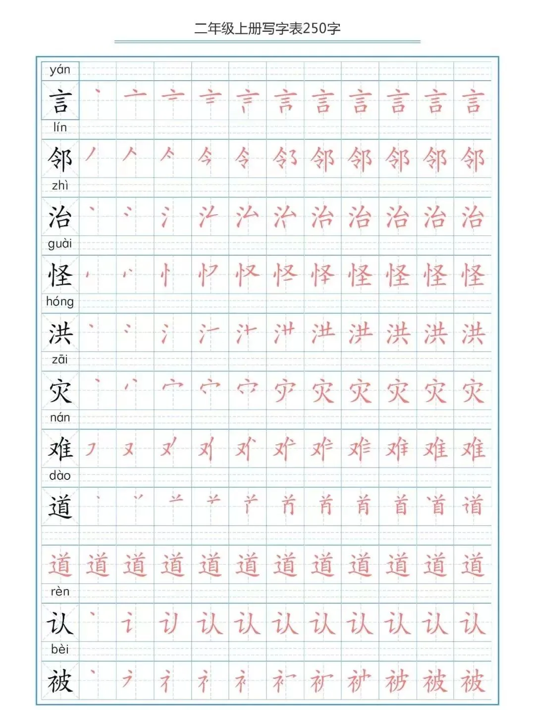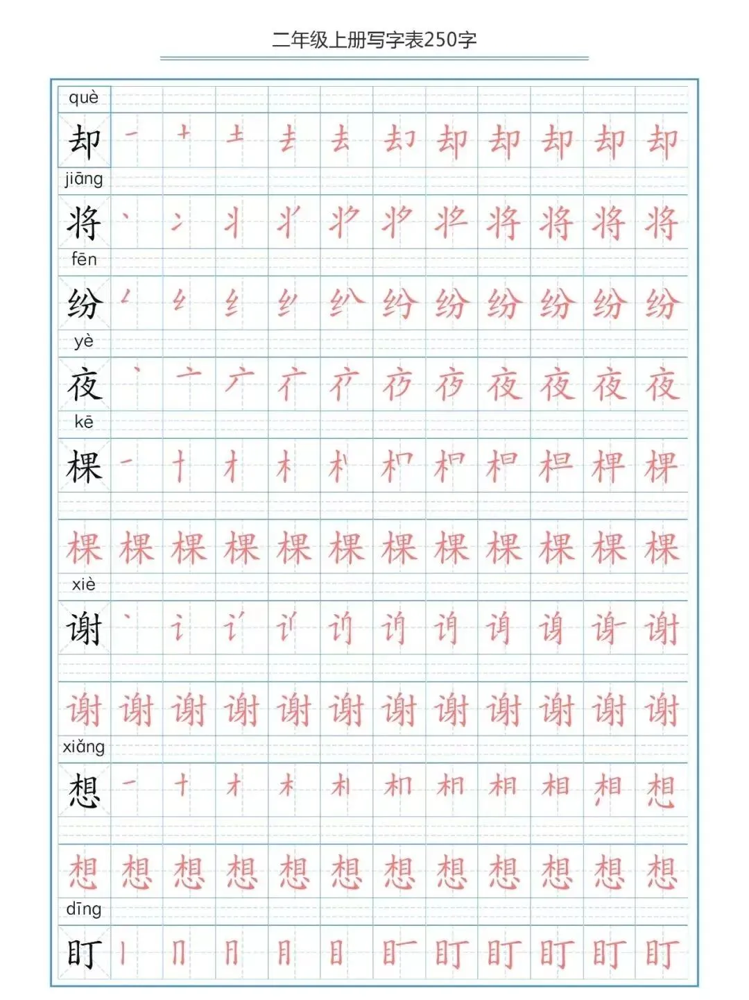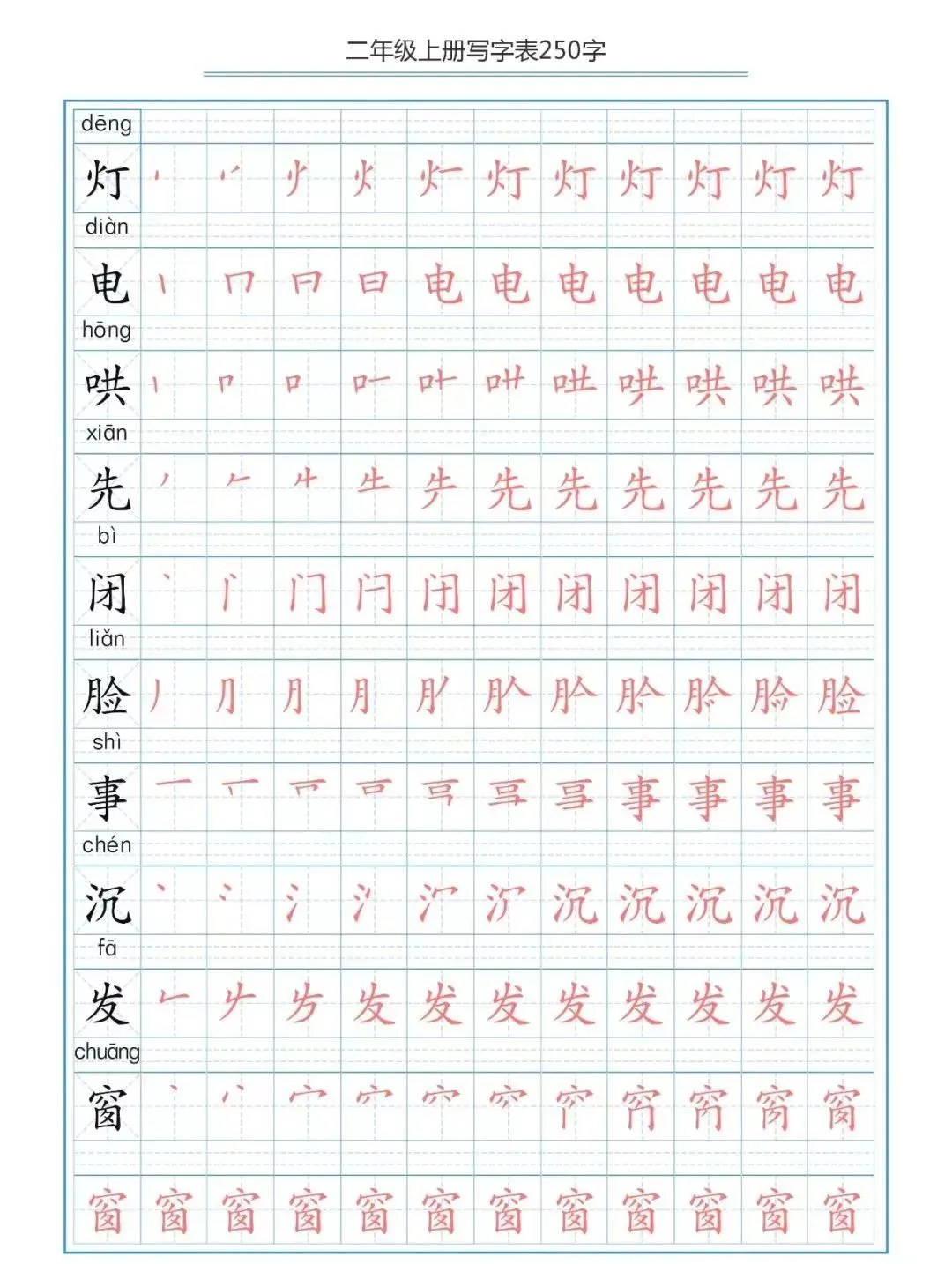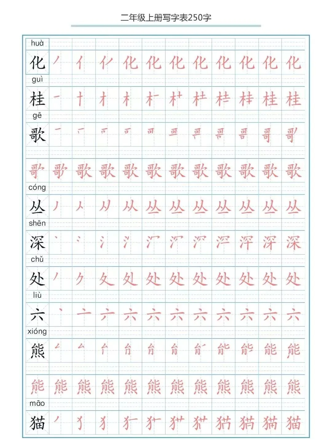 部编版二(上)生字笔顺分解练习(可下载)