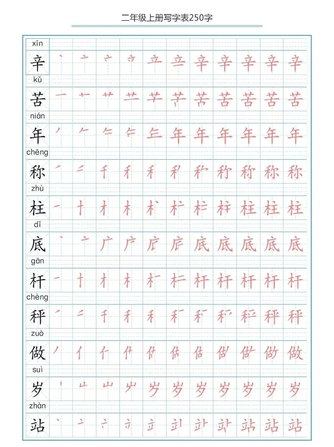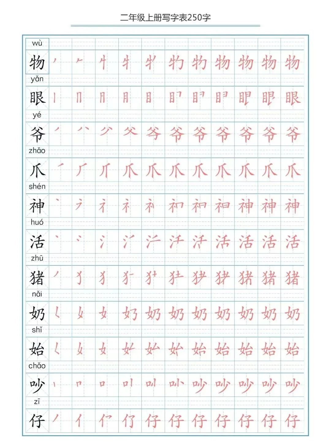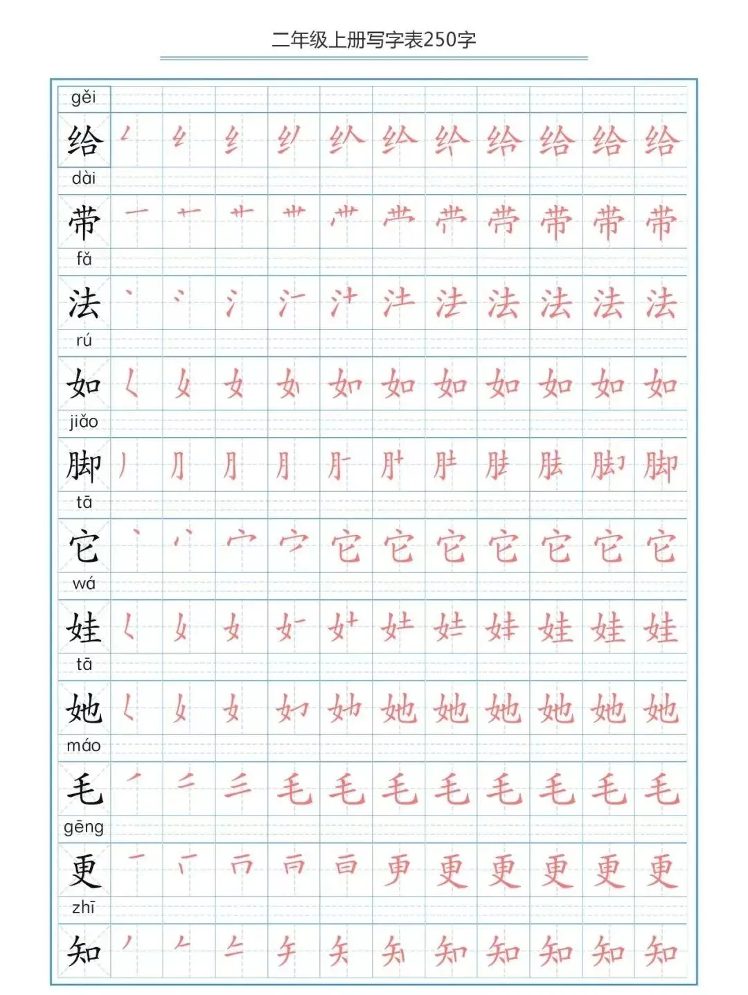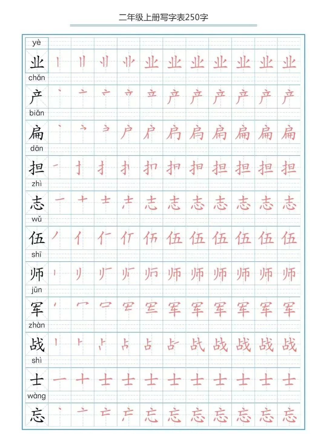 部编版二(上)生字笔顺分解练习(可下载)