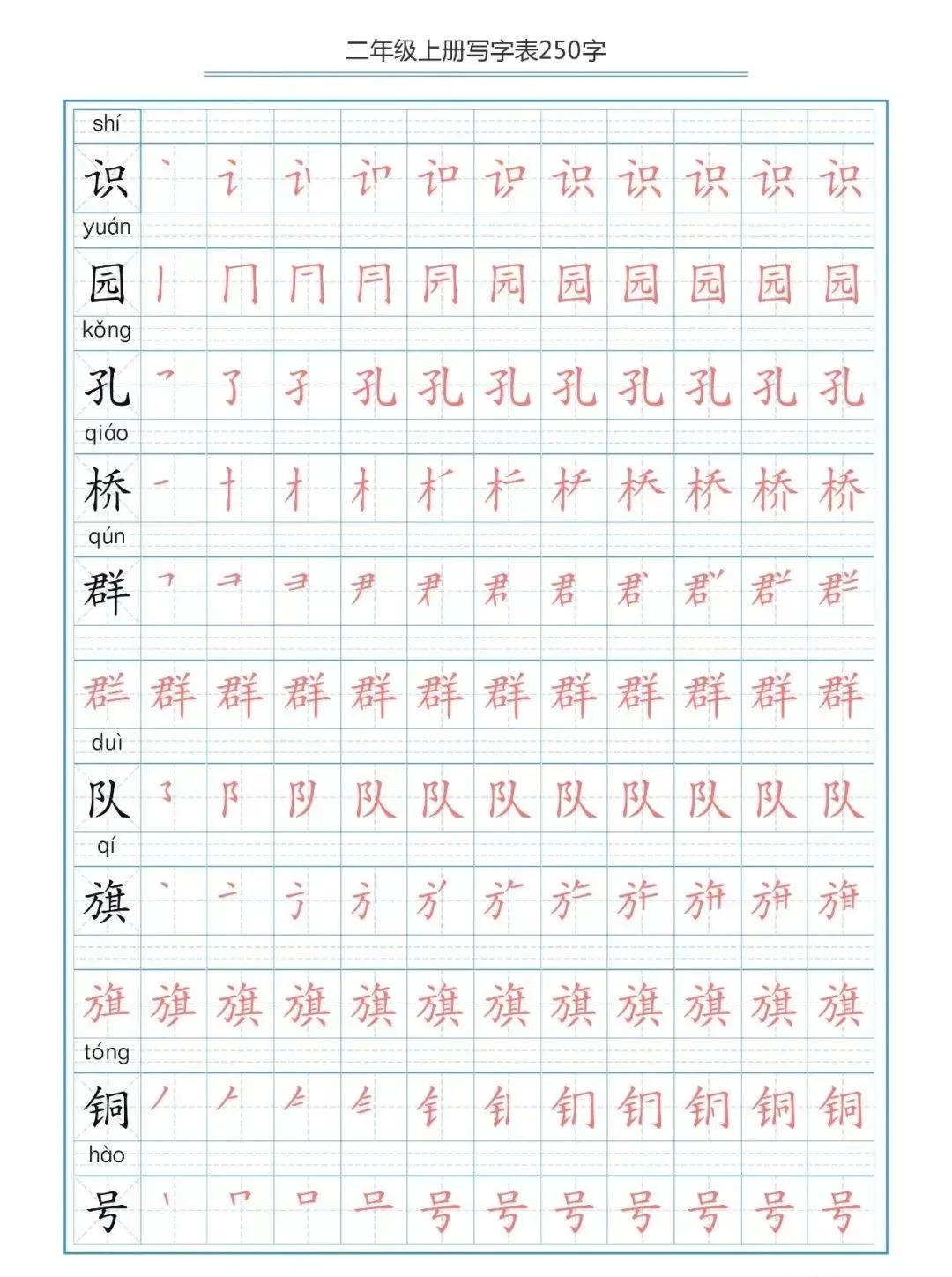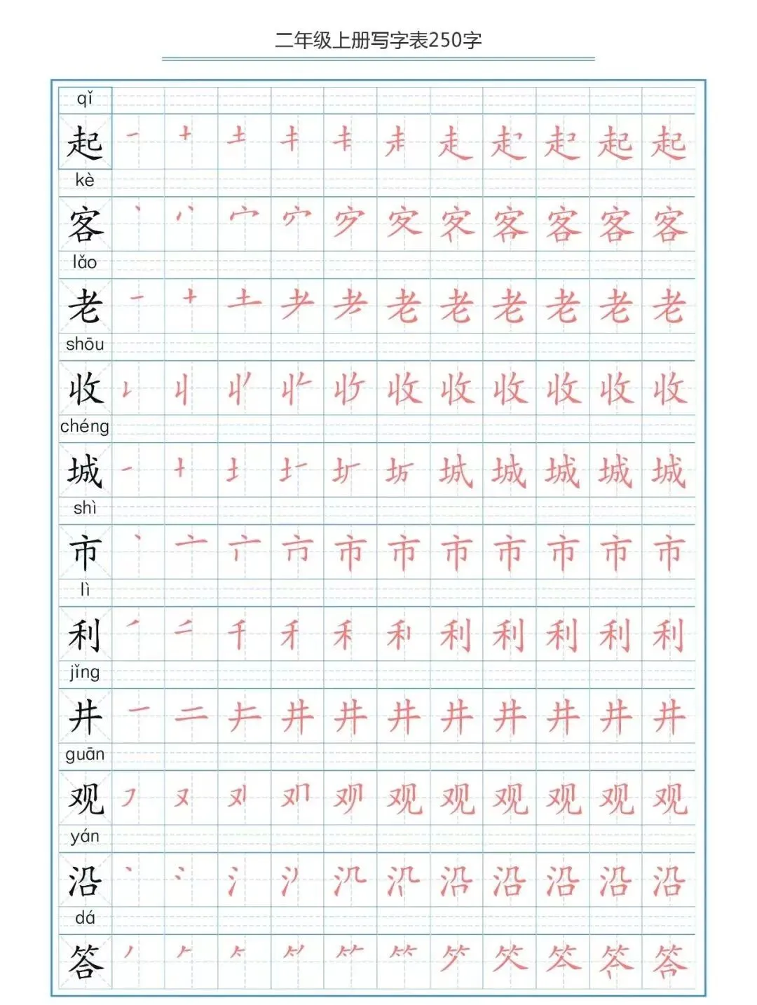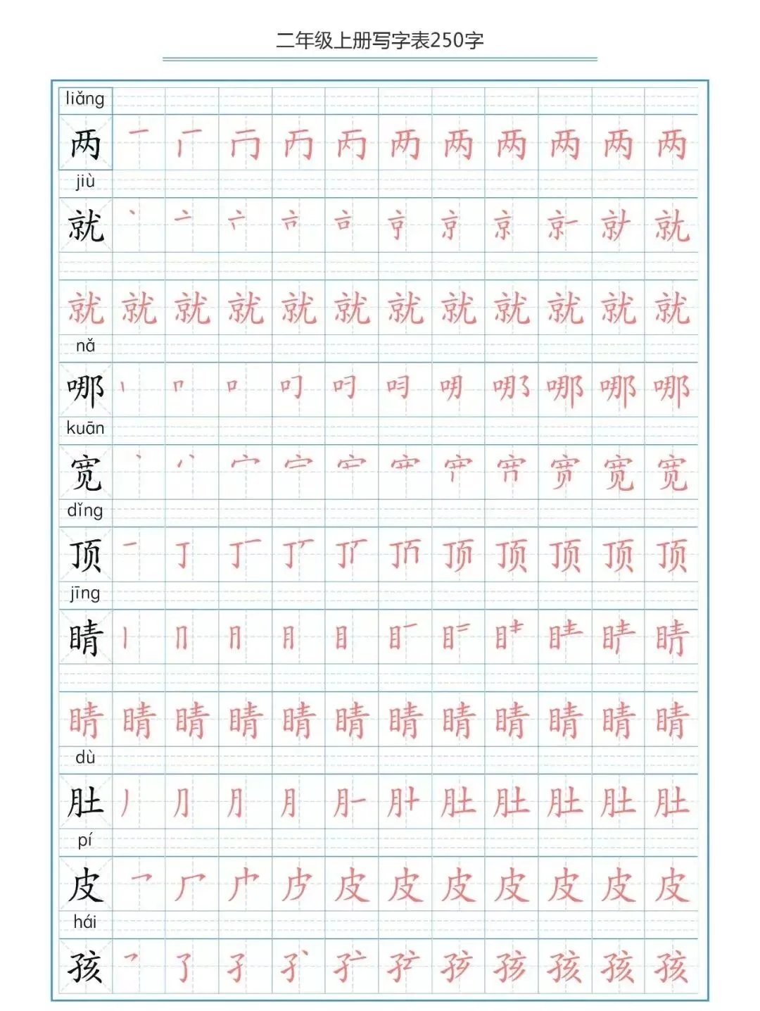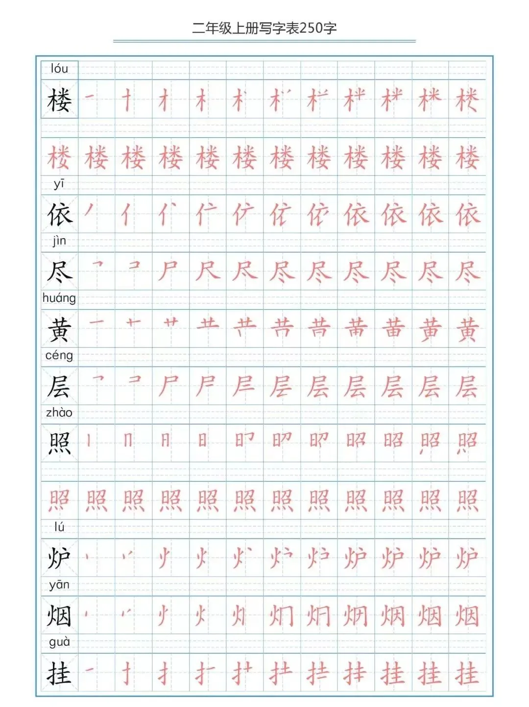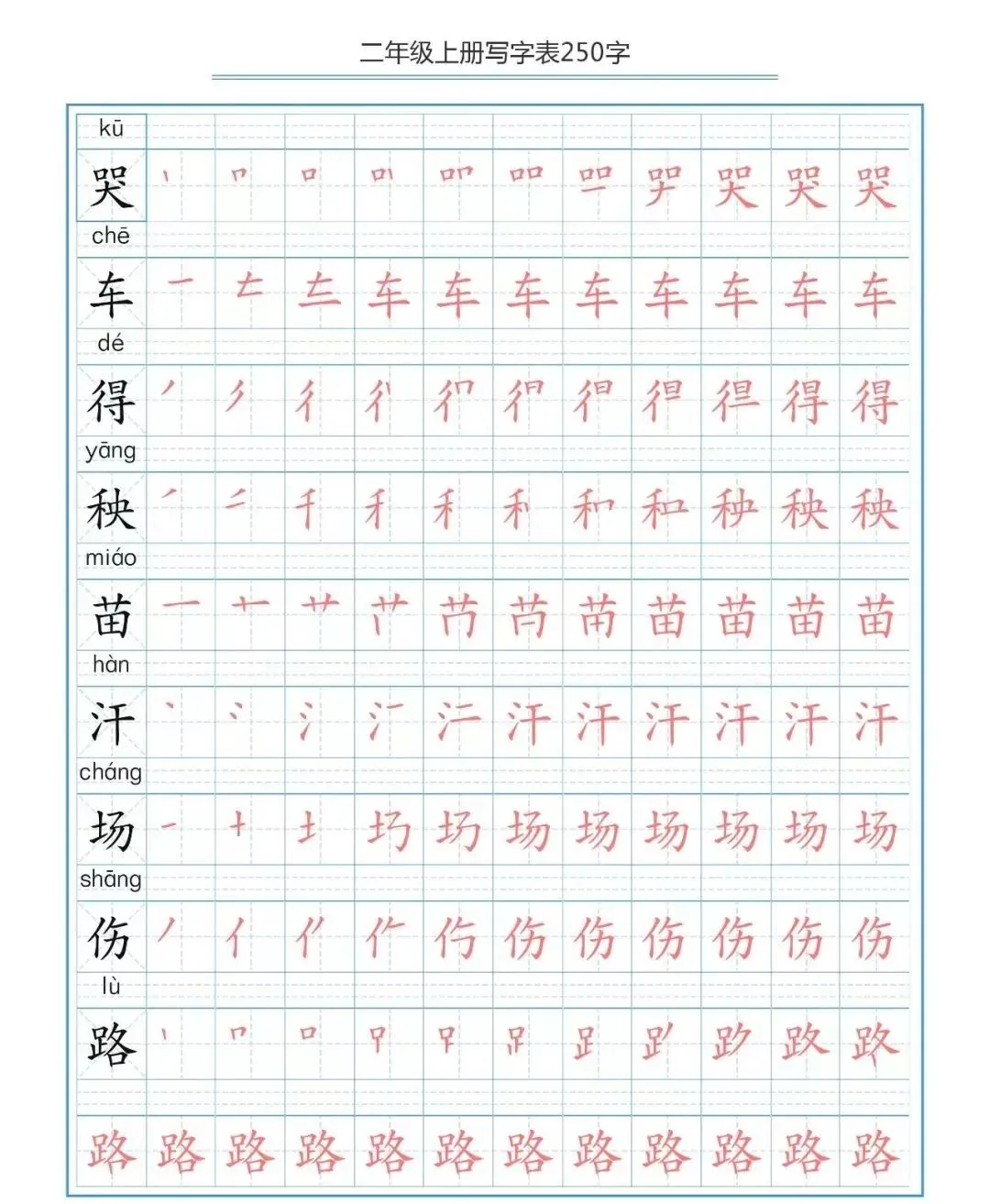 部编版二(上)生字笔顺分解练习(可下载)