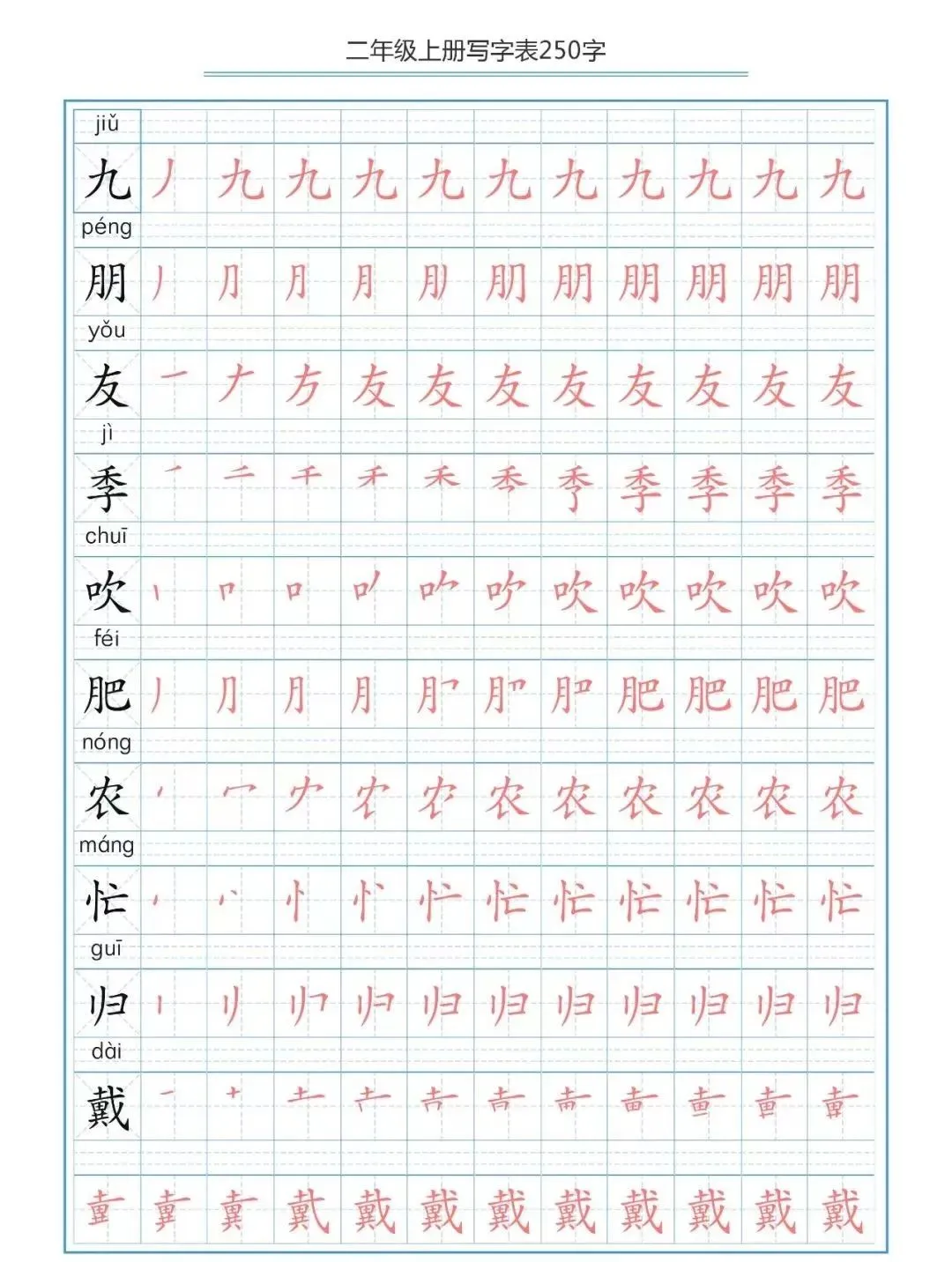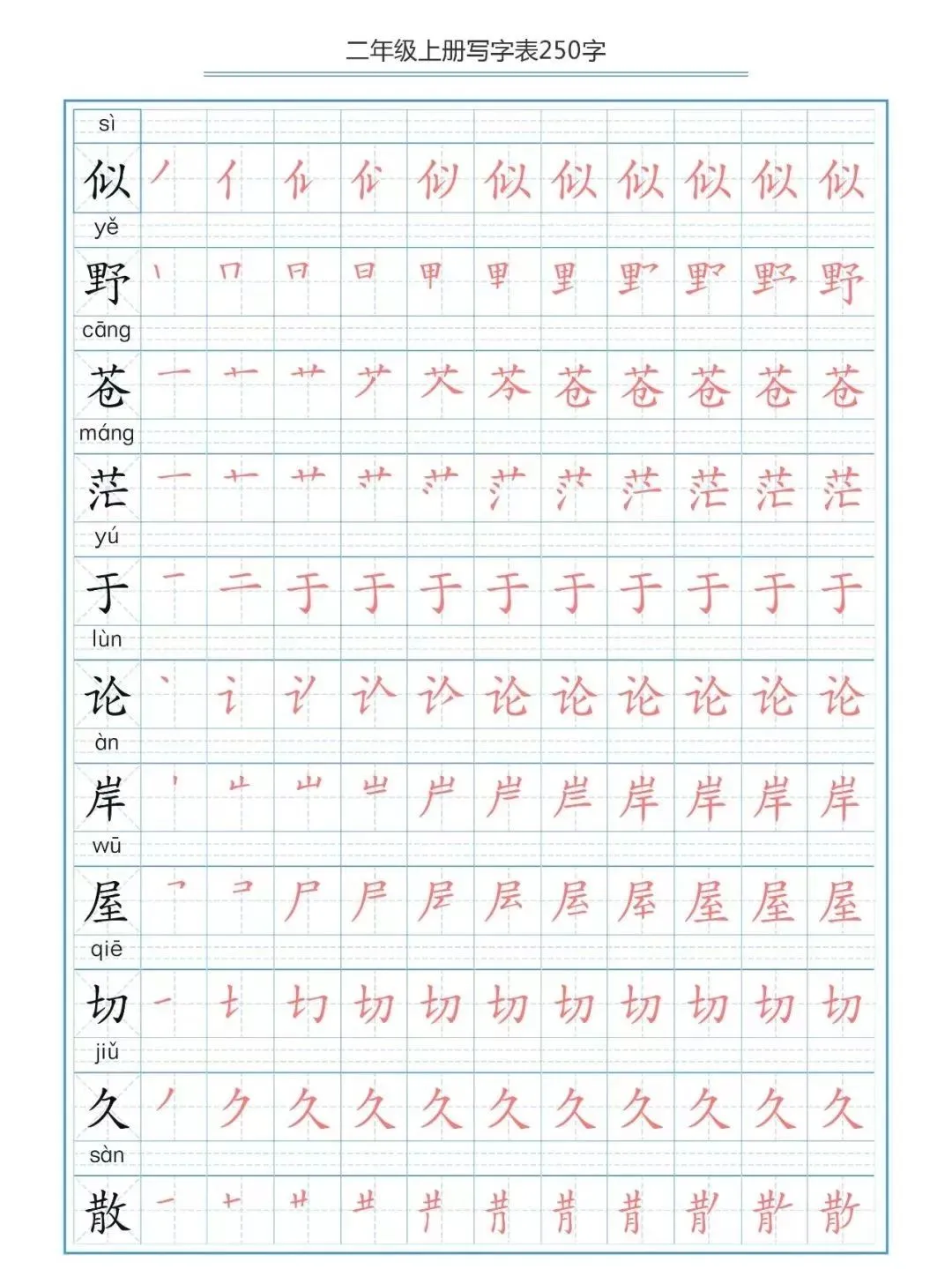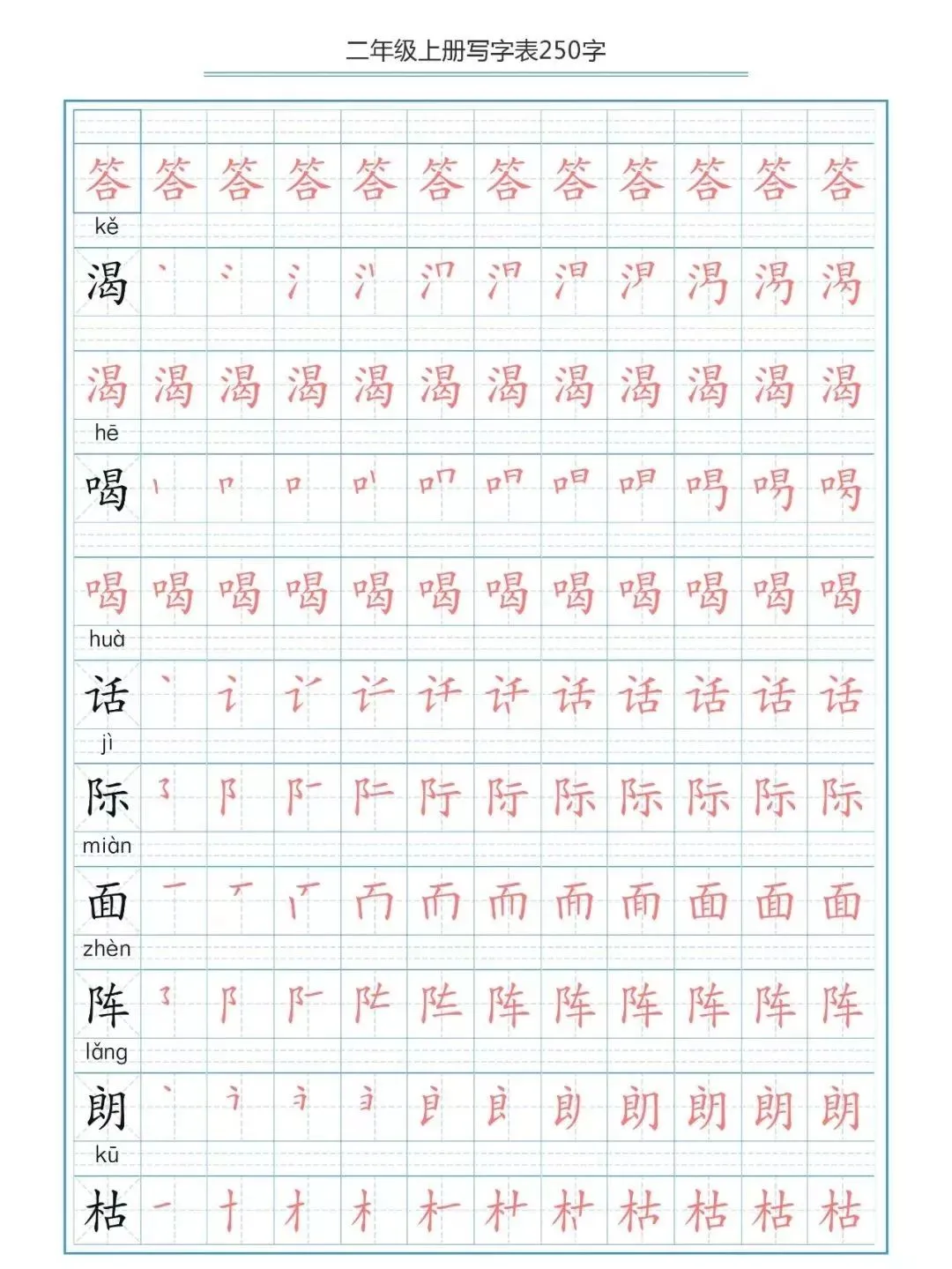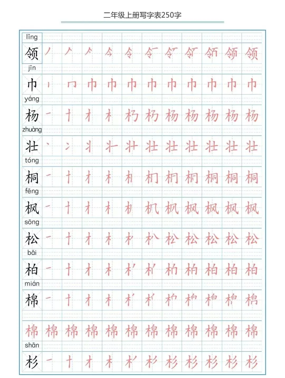部编版二(上)生字笔顺分解练习(可下载)
