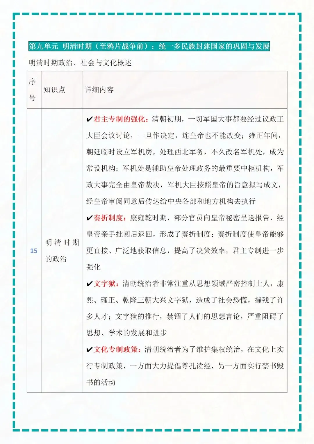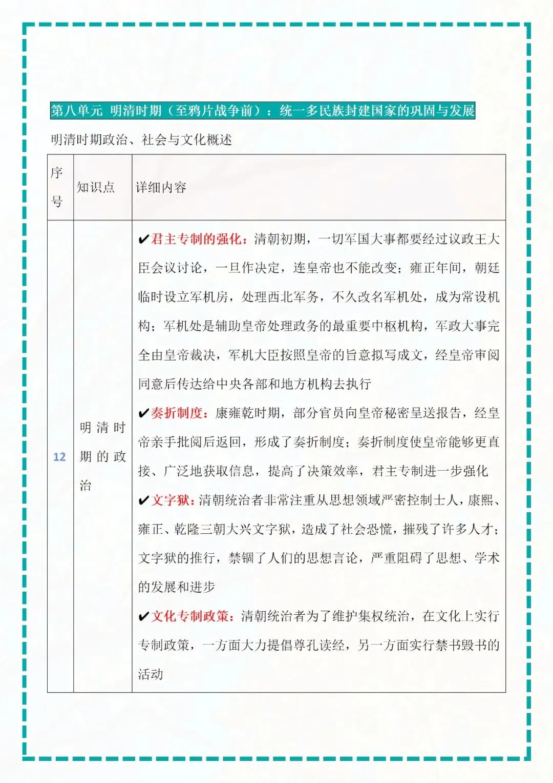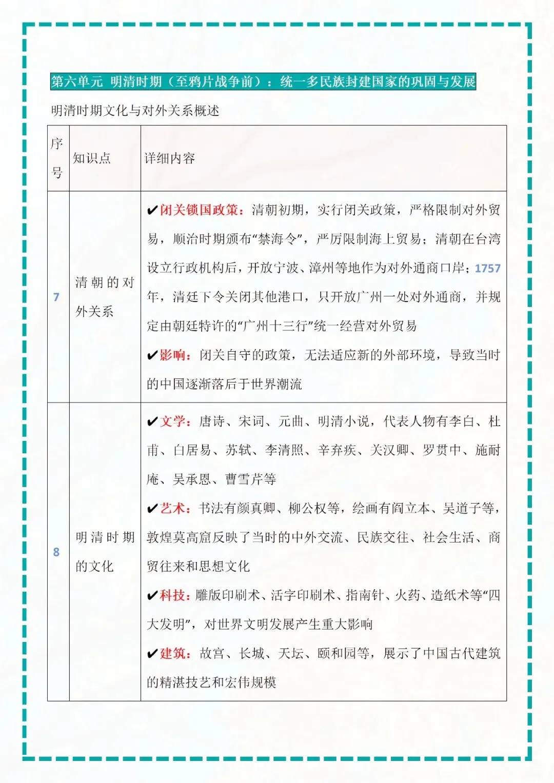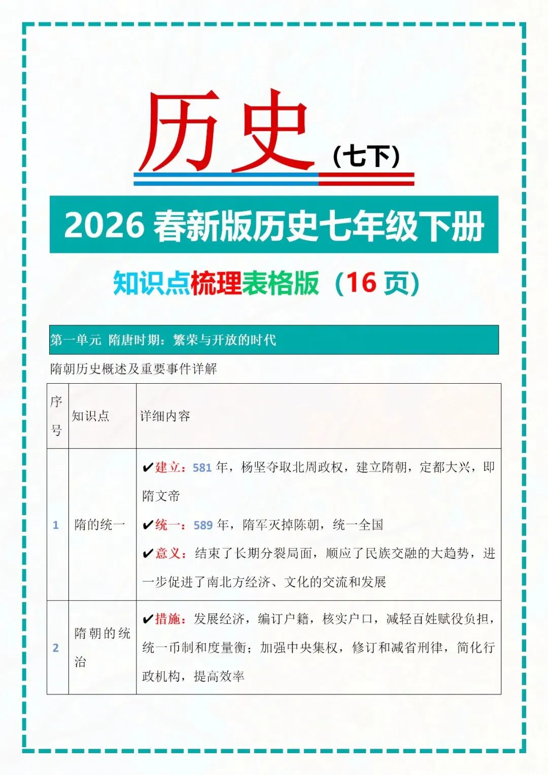 今天老师给大家整理了:七年级下册历史知识点梳理表格版电子版可打印!