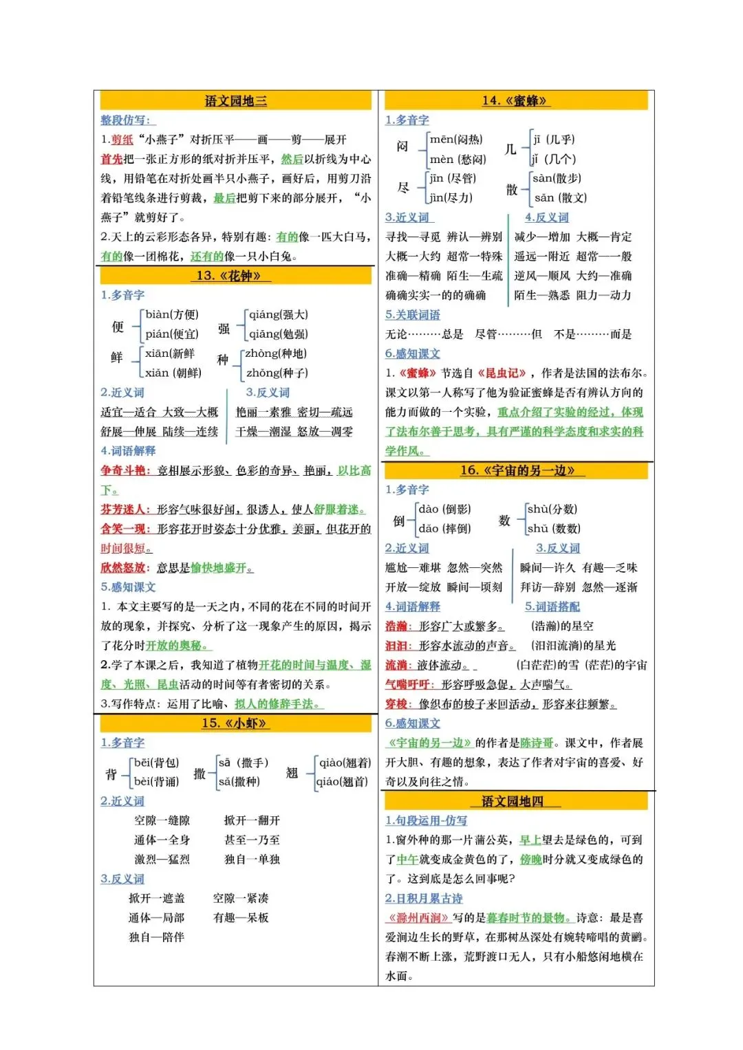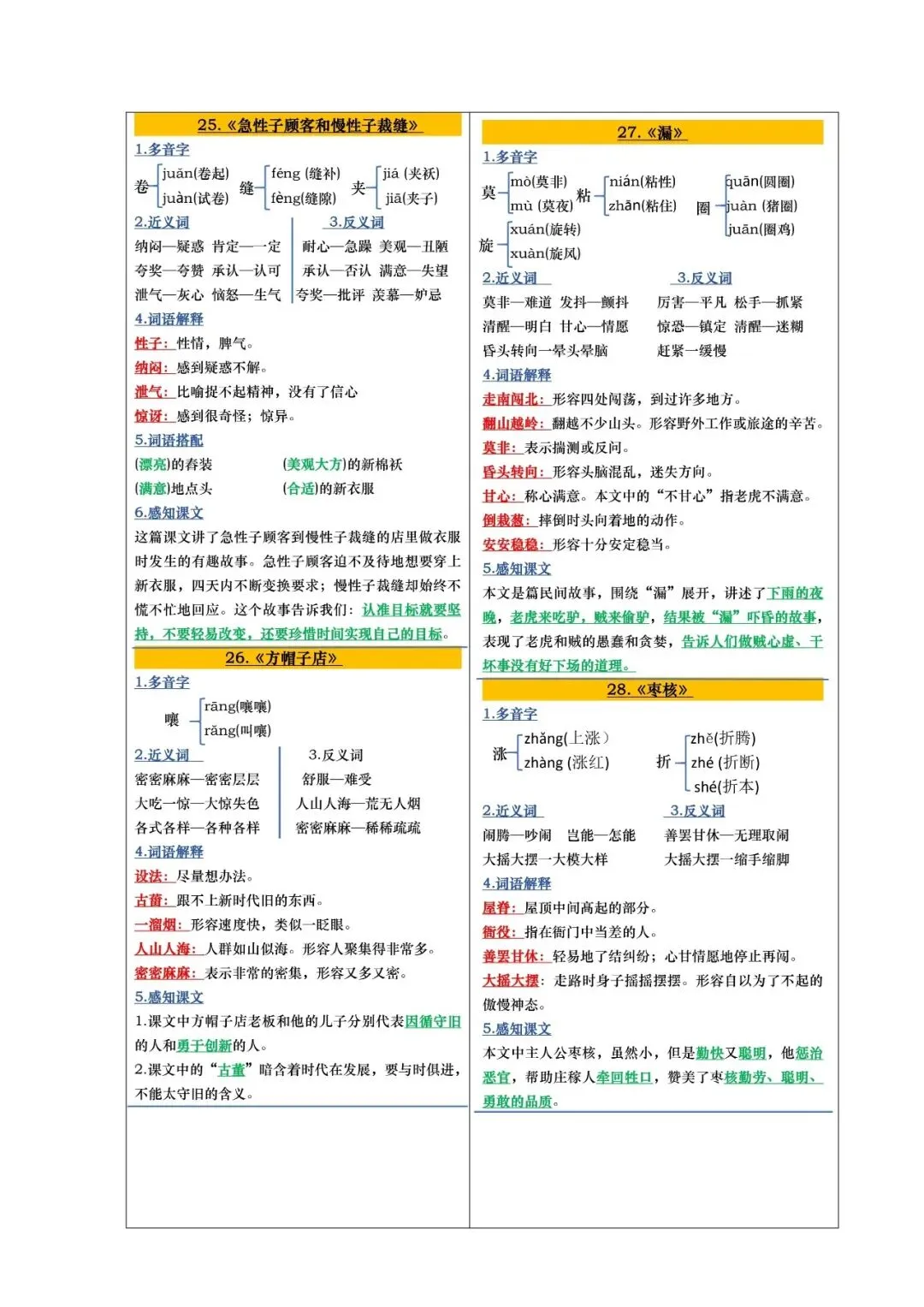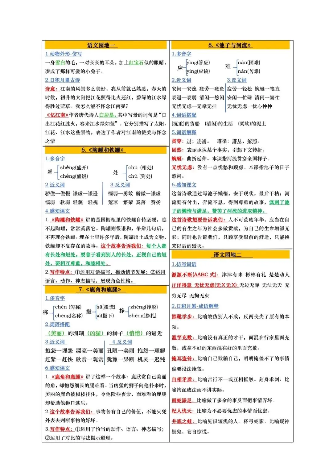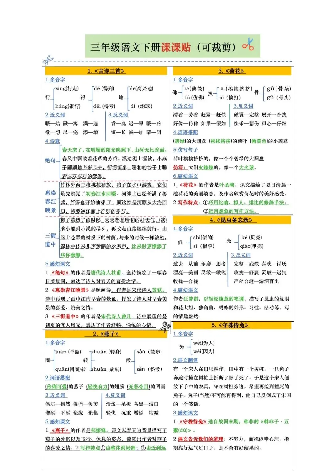 课贴包含每节课重点内容,比如多音字、近义词、反义词、词语、仿写等等,是学习好帮手,家长们可下载打印贴在课本上,方便孩子学习背诵