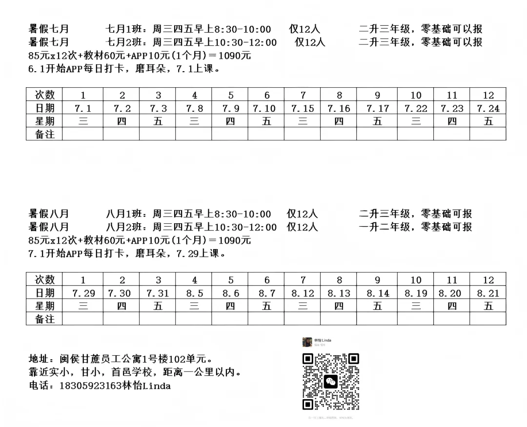 加微信,请备注“孩子姓名,几年级,学校”,比如“张三,二年级,实小”。姓名是方便称呼;按二年级,一年级,分开时段排课;学校就知道是否住在闽侯,因为只招闽侯甘蔗周边的学生。