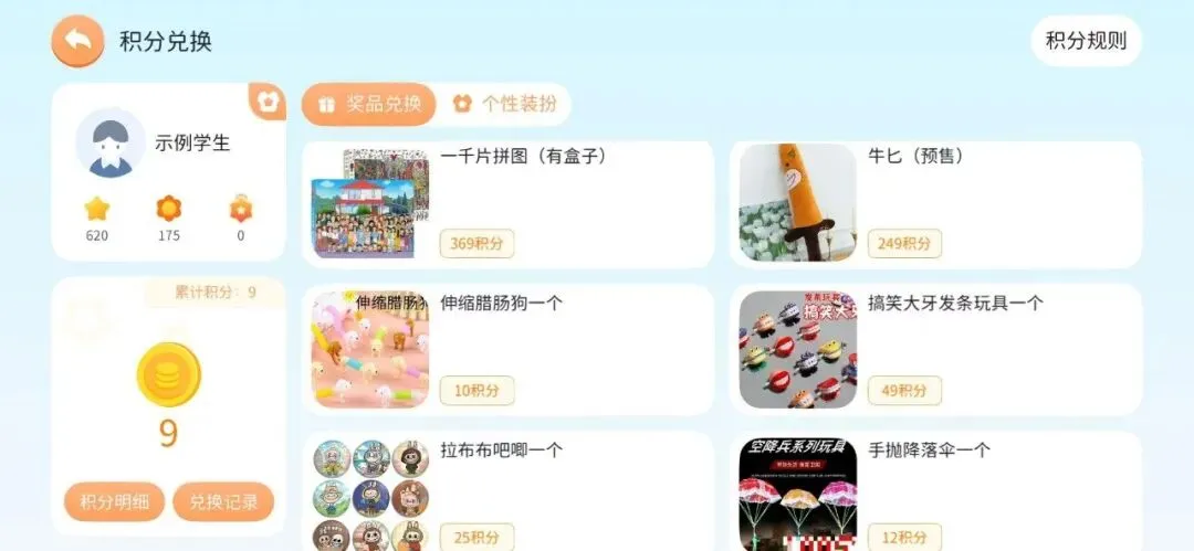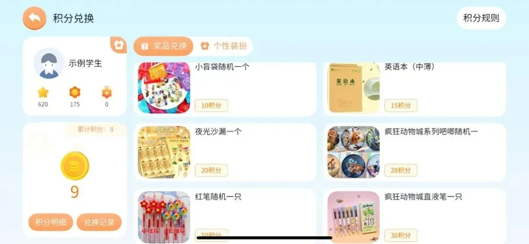每天读英语,APP会自动发工资(积分),小朋友到教室可以兑换现金。有专门的助教打包积分礼物,课前发货给小朋友。