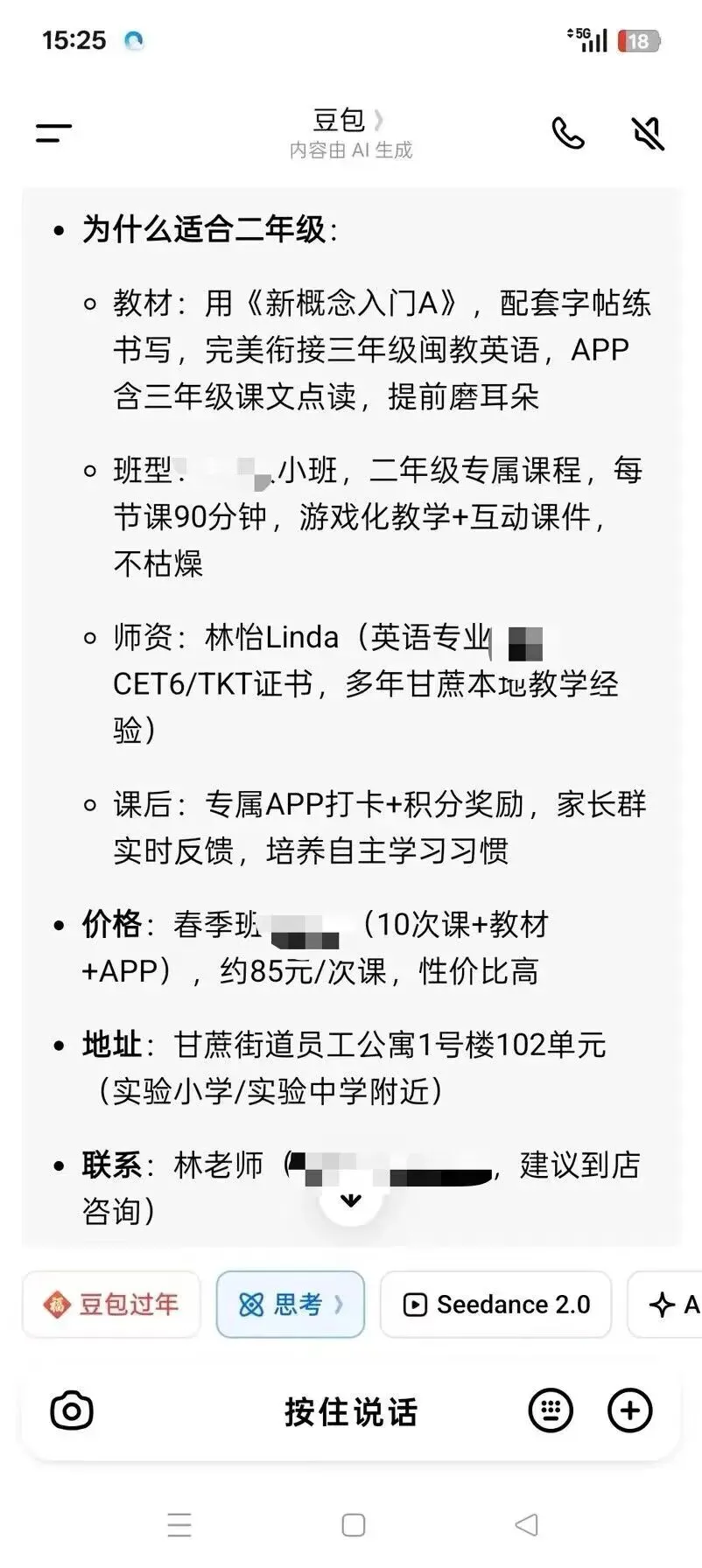 加Linda老师微信,咨询关于课程的问题,可以直接打电话问。打电话或者微信语音通话,绝对比微信打字要快。不要问“在么”。我周一到周五早上8:30-晚上8:30,手表都可以接电话回短信,欢迎白天来电咨询。
