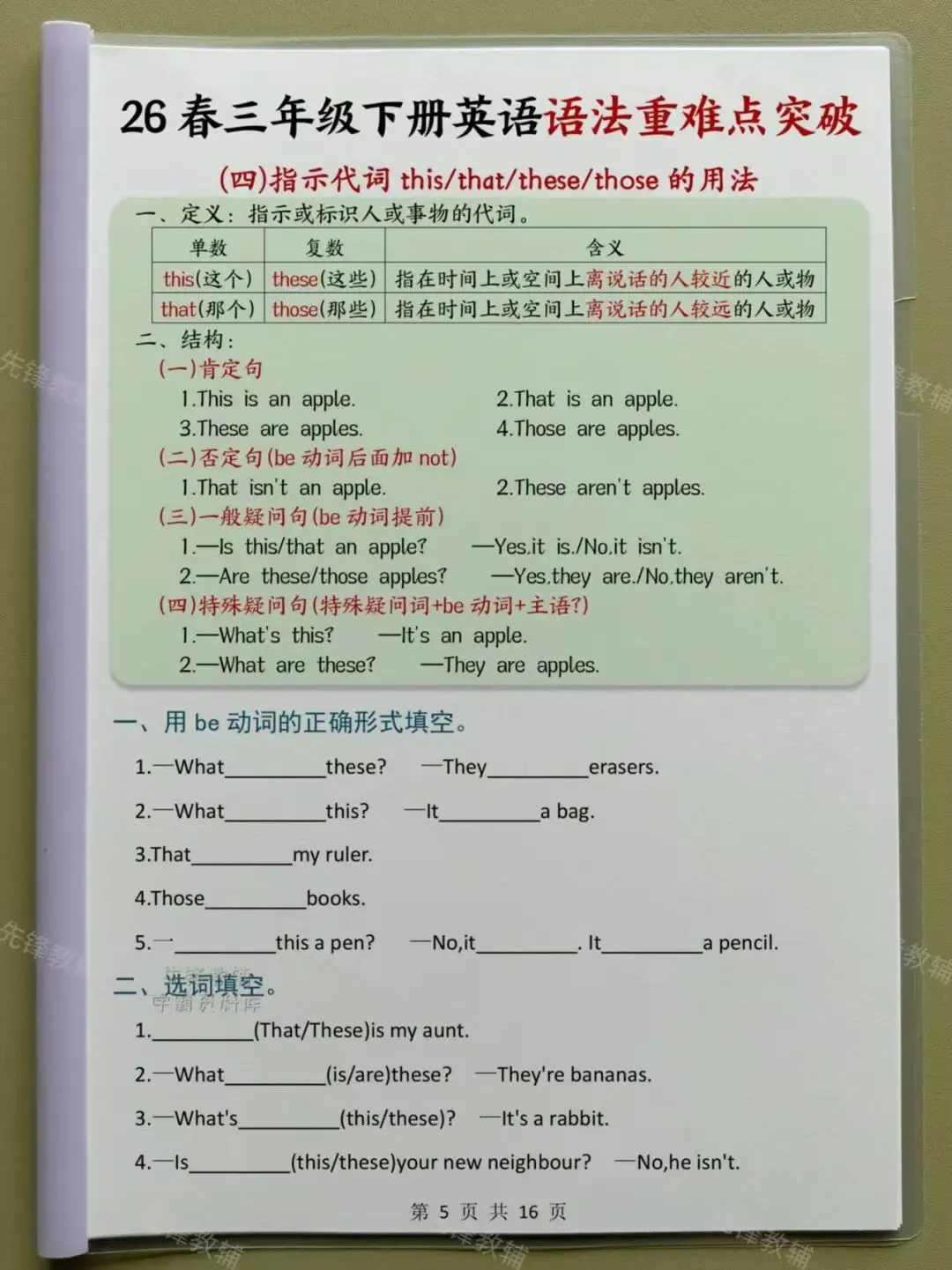 每一个语法点都先讲作用、结构、例句,用大白话拆解规则,搭配孩子能看懂的生活化例句,再配套分层练习🏅