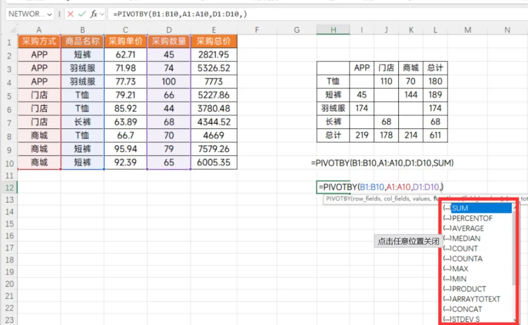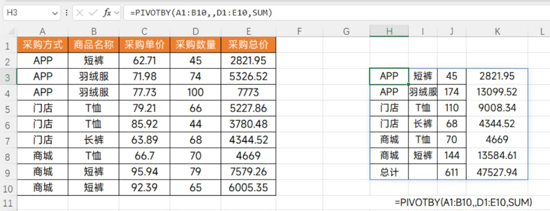 简单来说,PIVOTBY就是透视表的函数版本。透视表能干的事,它都能干,而且干得更漂亮——最大的优势就是结果能自动更新,不用手动点刷新。