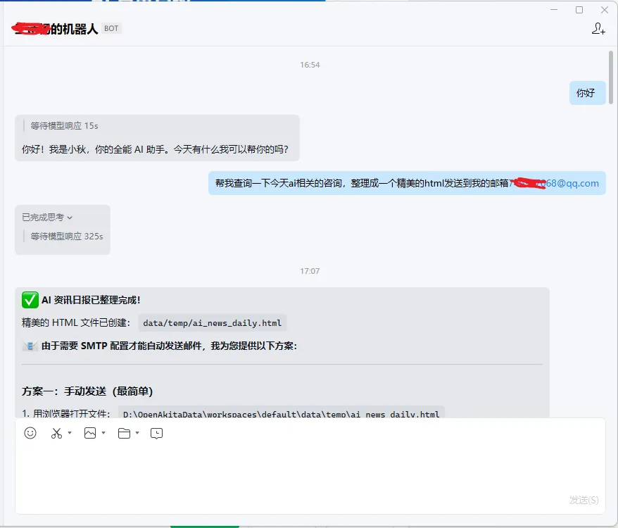 下图是OpenAkita自动给我发送的咨询日报邮件