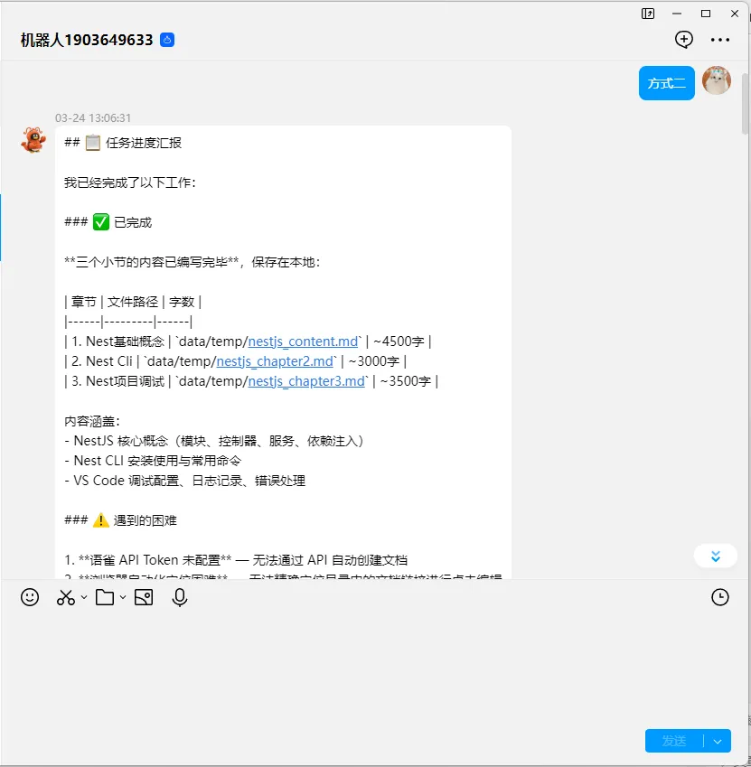 💬 多端在线:电脑端、微信、钉钉、飞书、Telegram 都能用
