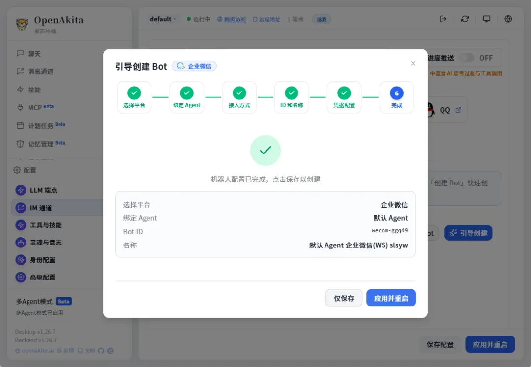 在日常逛b站的时候突然发现了一个宝贝:OpenAkita,功能比龙虾强大不说,配置也很简单