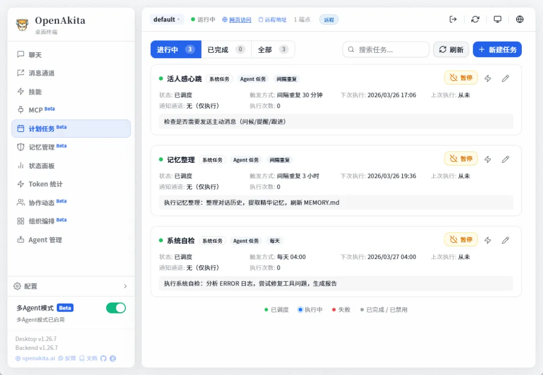 接下来openAkita已经配置好了。他的界面,功能友好程度都比openclaw强了不止一点。