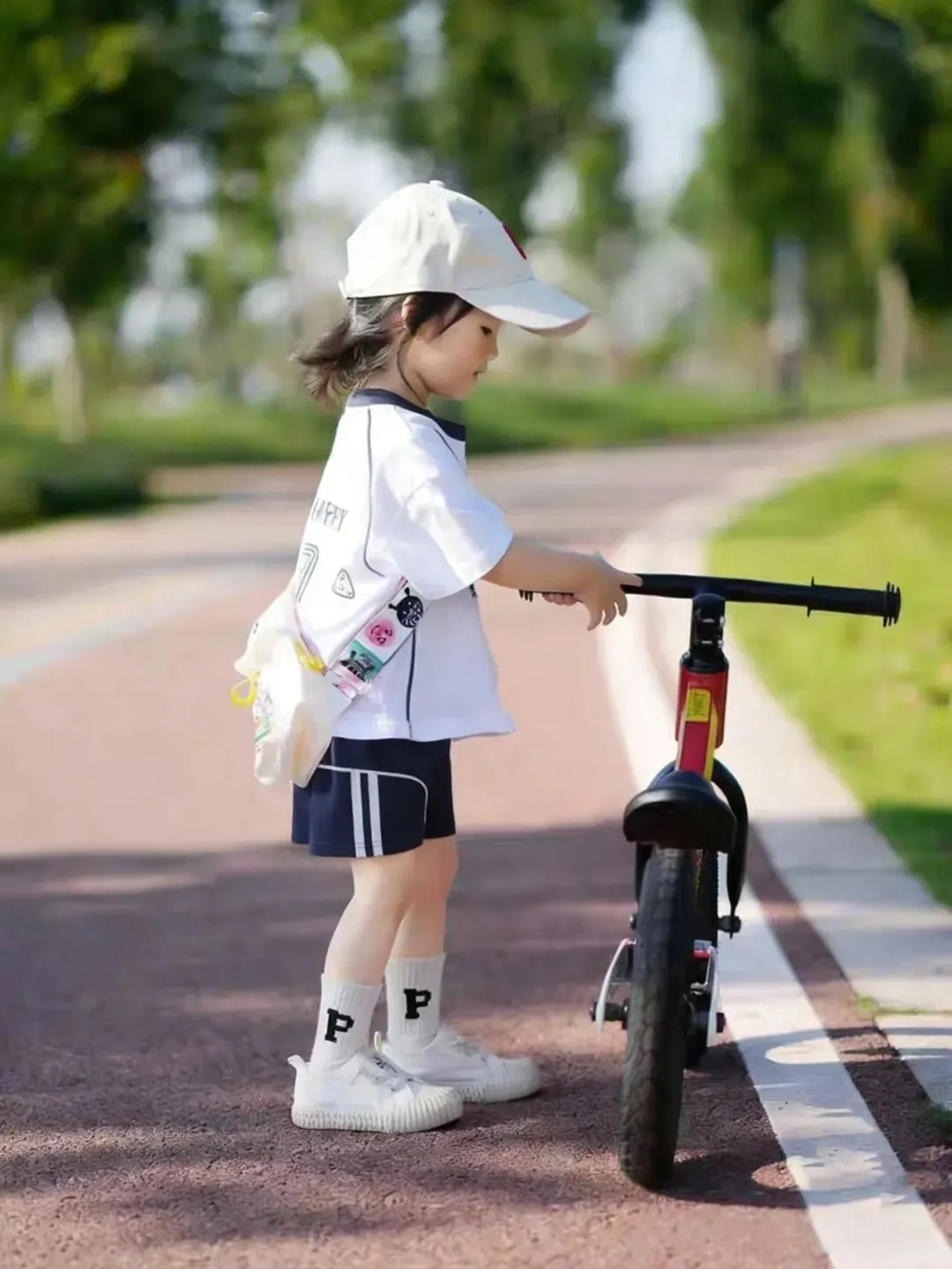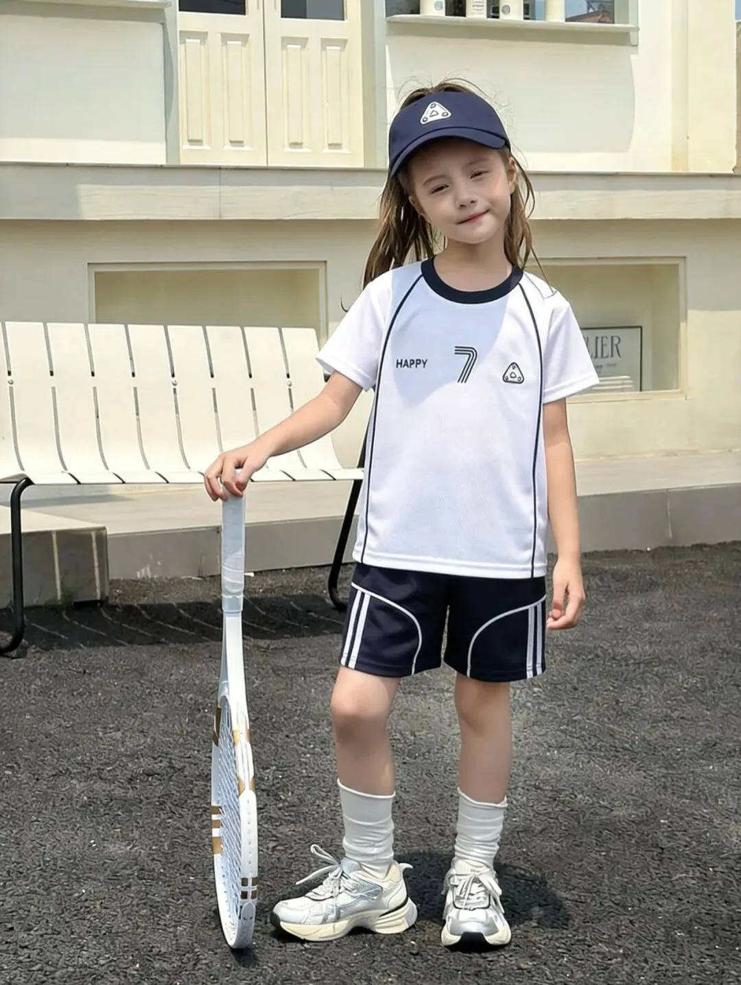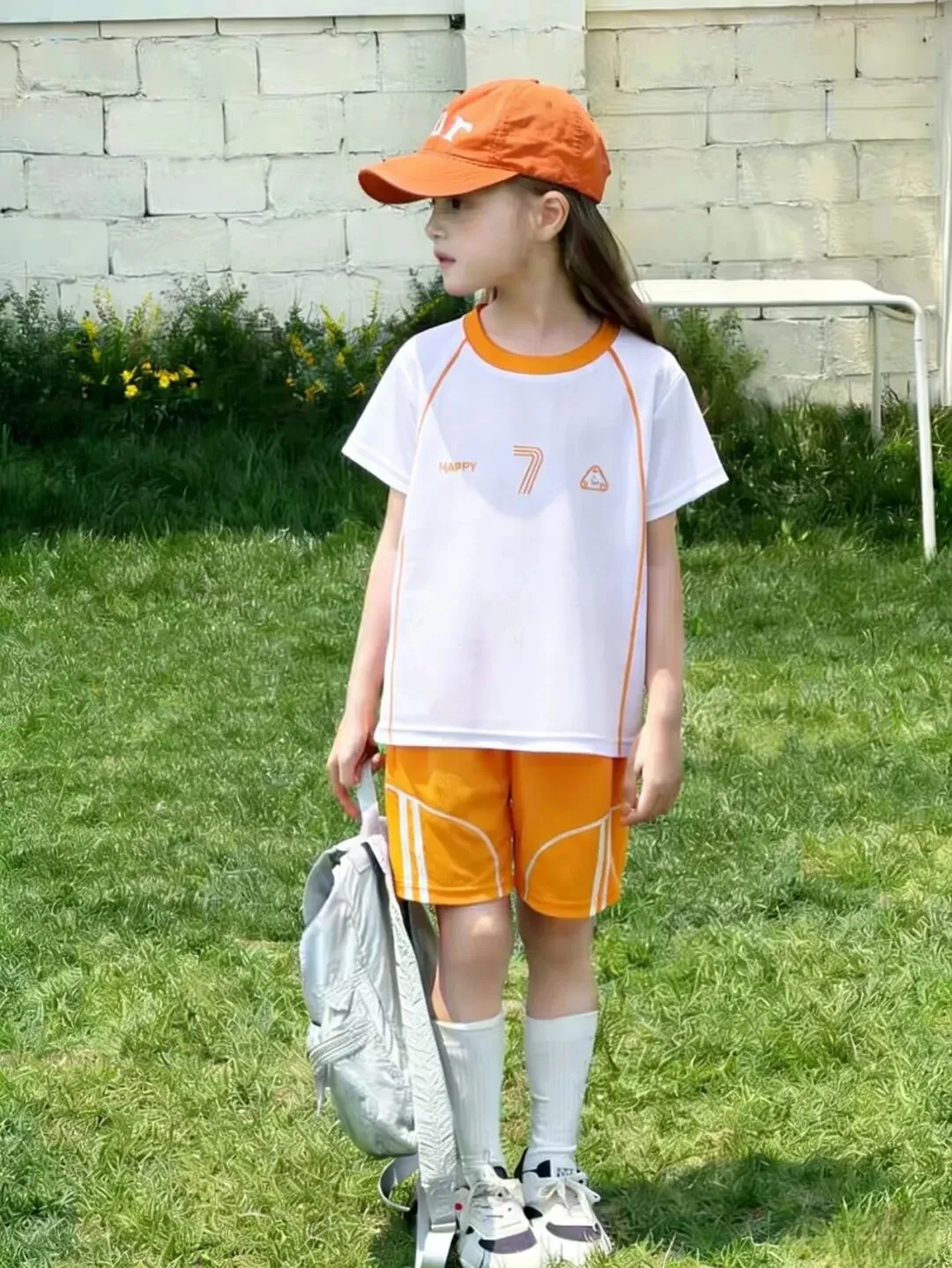 短袖和短裤采用了撞色设计,纯白底色的短袖+多巴胺彩色的短裤,一整套搭配起来非常亮眼。