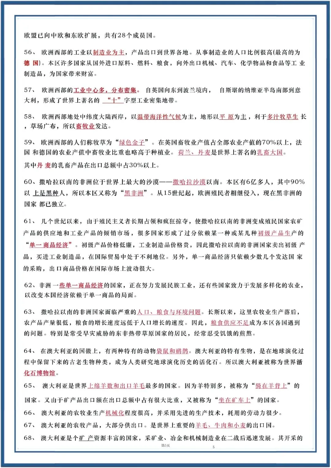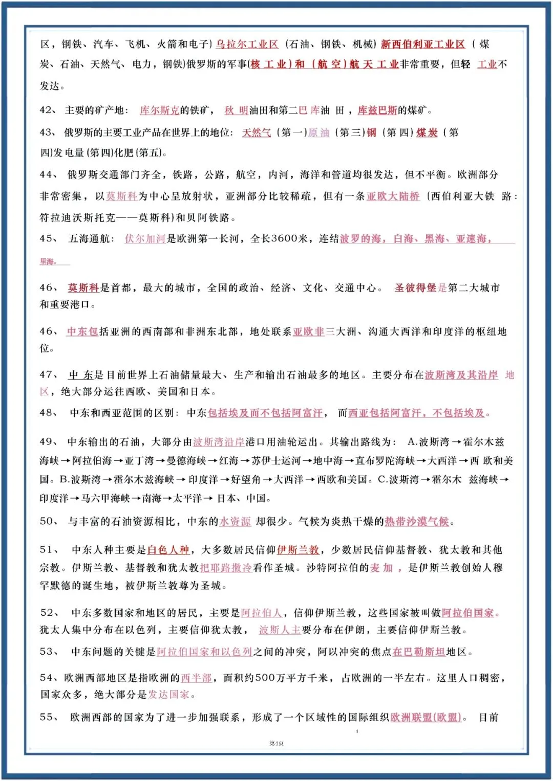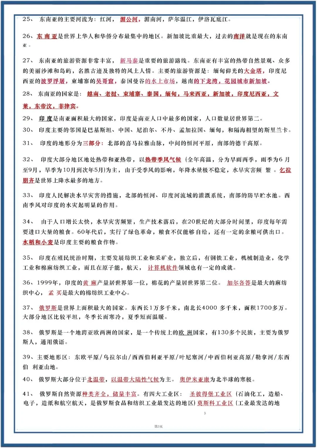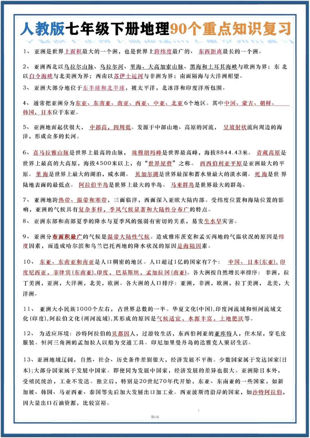 今日老师为大家整理了:七年级下册地理90个重点知识复习电子版可打印