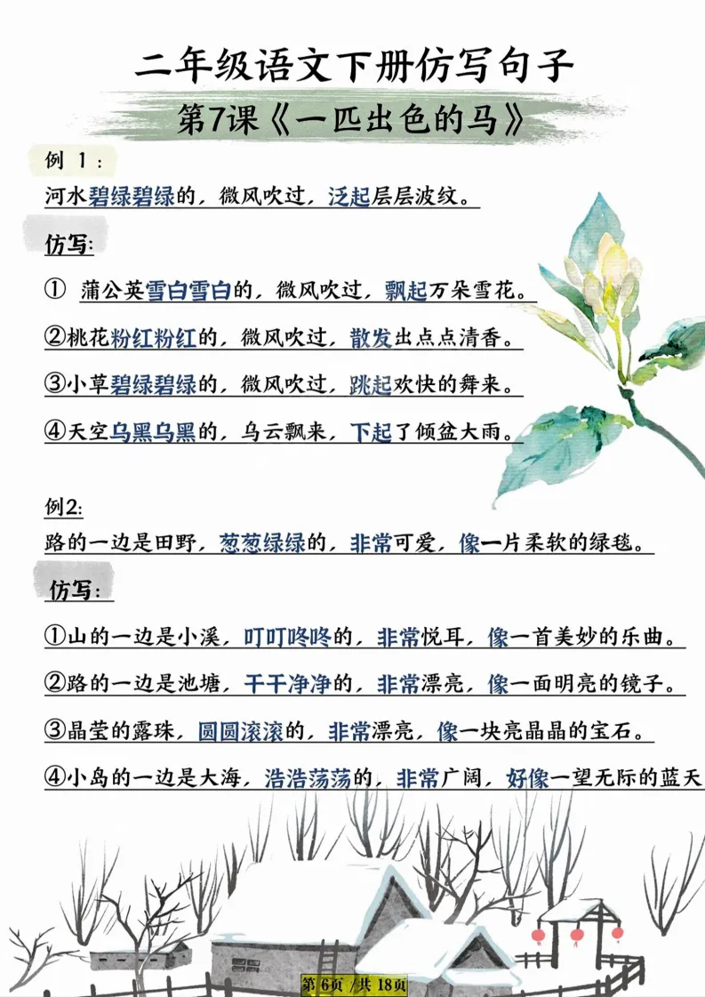 大家好,我是妞妞,专注于1-9年级教育资源分享,今天给大家分享的是:二年级下语文仿写句子,PDF电子版可下载打印。文章末尾可直接领取,✅ 建议收藏+下载,随时给孩子用。💡 如果觉得这份资料对孩子有帮助,欢迎分享到班级群/年级群,让更多家长和孩子受益!🔖 支持正版,让我们一起为孩子提供更优质的学习资源。📚手把手教你打印,又快又好又方便又省钱。