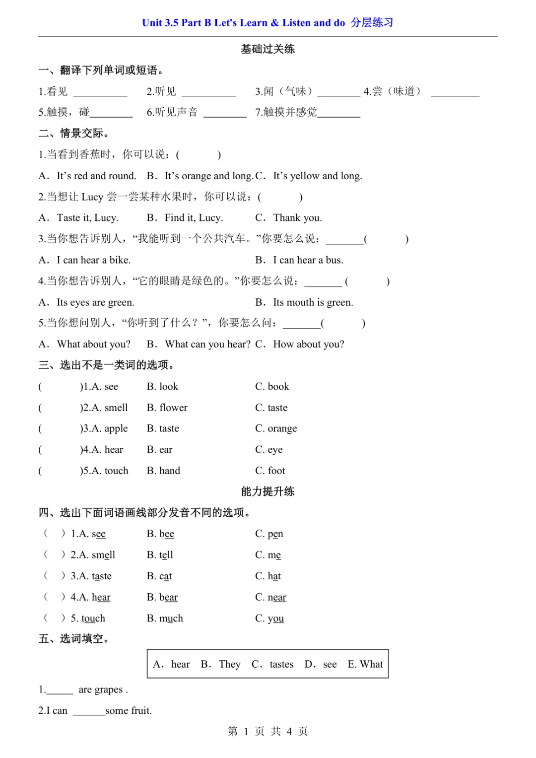 三年级(下)英语 Unit3电子版PDF,4页,免费下载