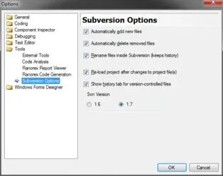 注意:打开Ranorex Options菜单(Tools->Options)来改变Subversion的设置。在Ranorex 4.0里面选项”Automatically add new files”默认是选中的 (更早的版本中,默认不是选中的)