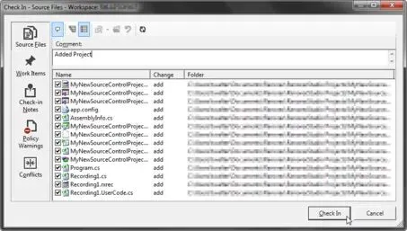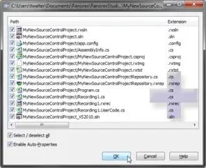 勾选那些我们想要进行源码控制的文件,对那些不想进行源码控制的文件取消勾选。