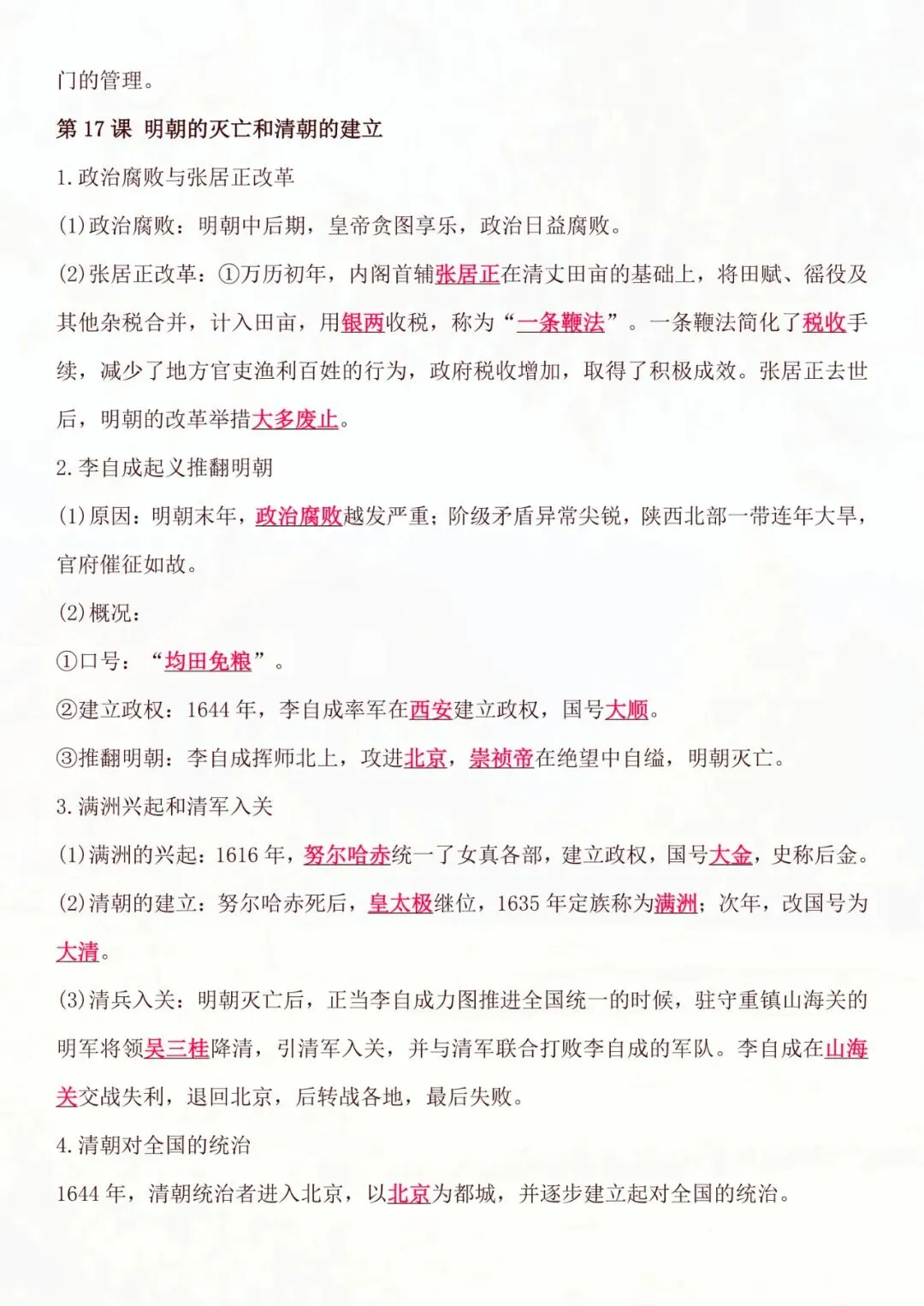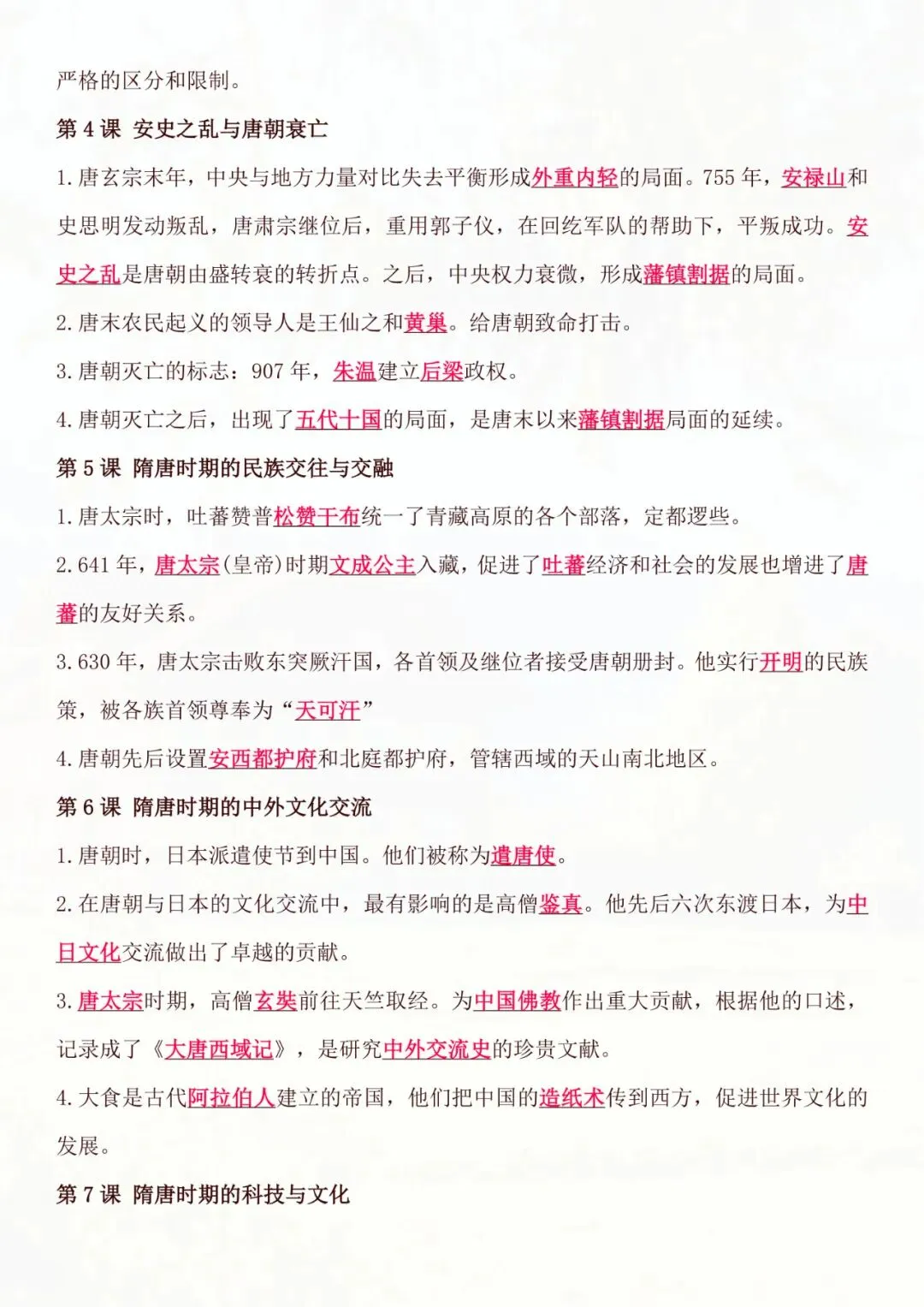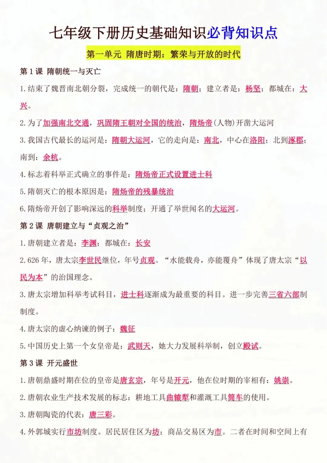 七年级下册历史|基础知识必背知识点 电子版可打印
