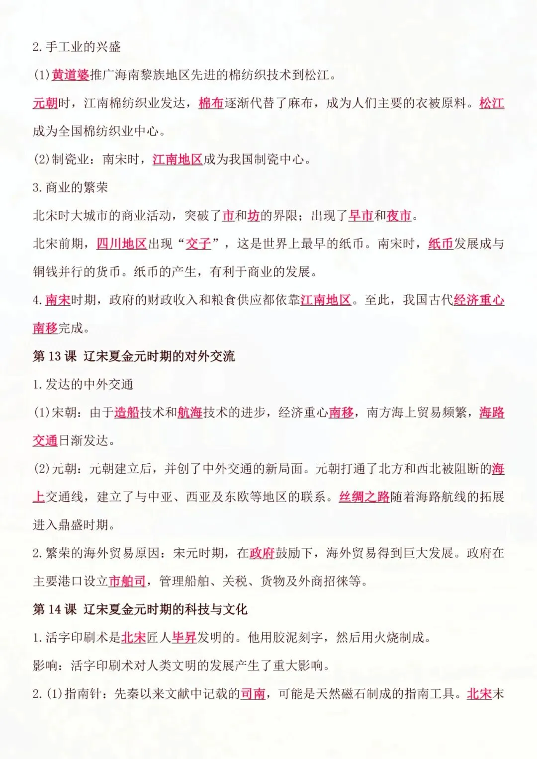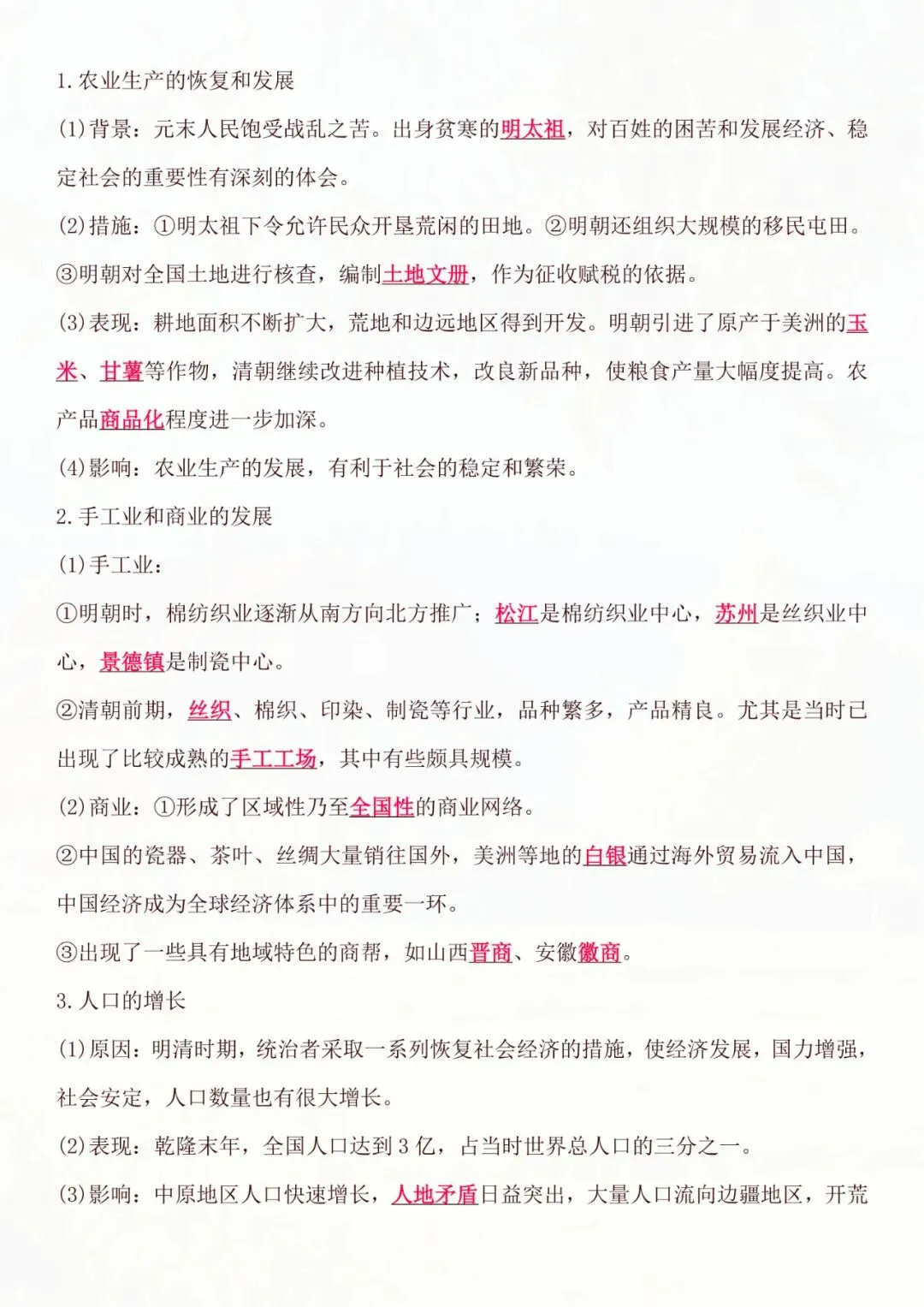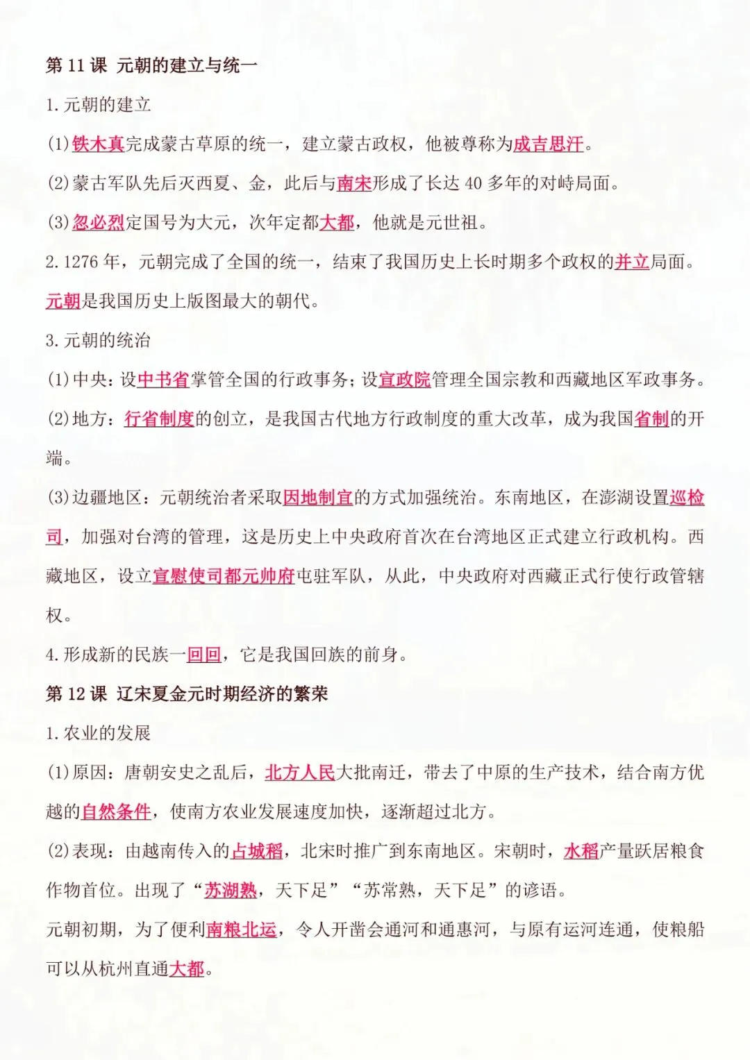 七年级下册历史|基础知识必背知识点 电子版可打印