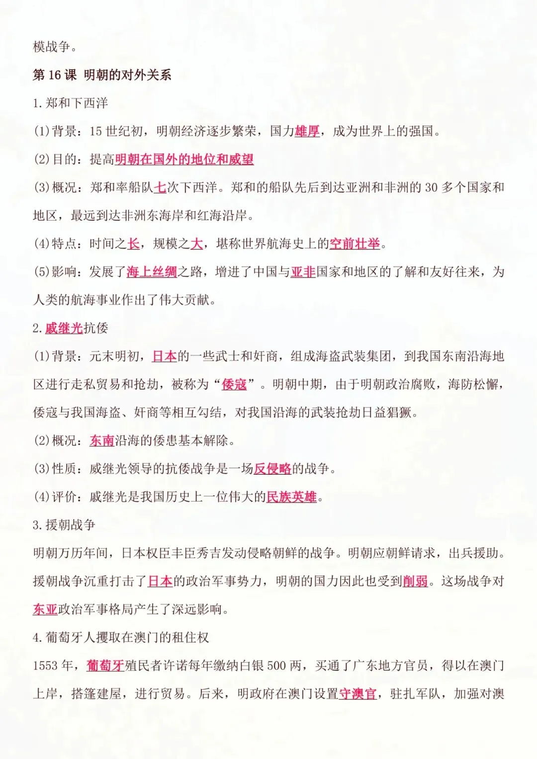 今天老师为大家专门整理好了:七年级下册历史|基础知识必背知识点 电子版可打印!