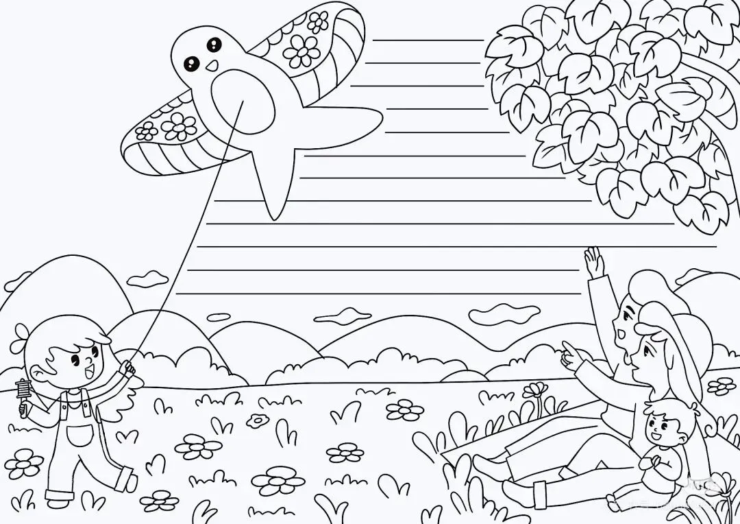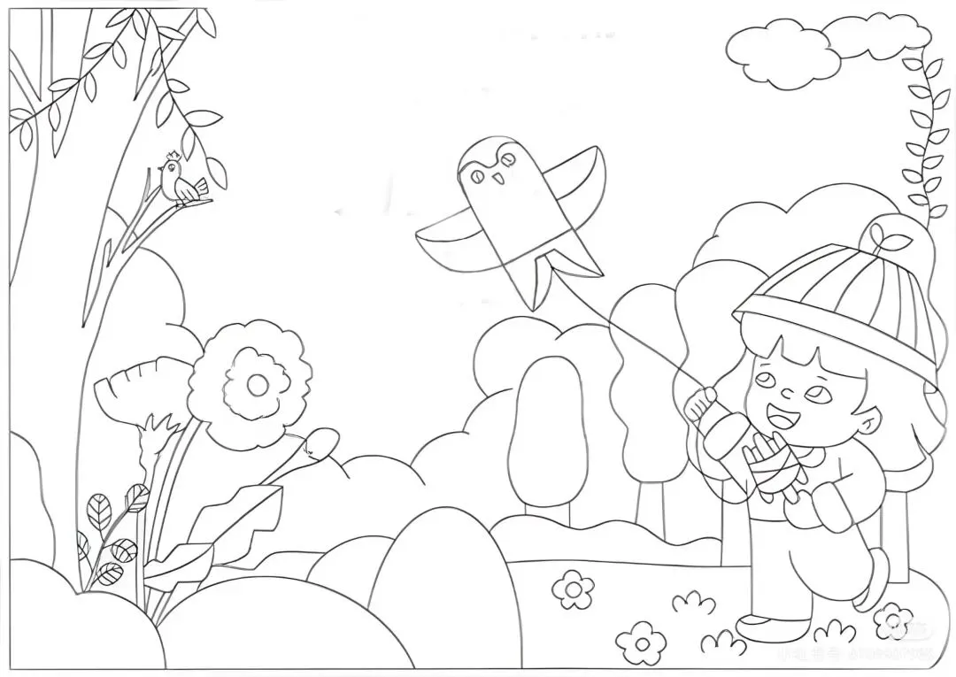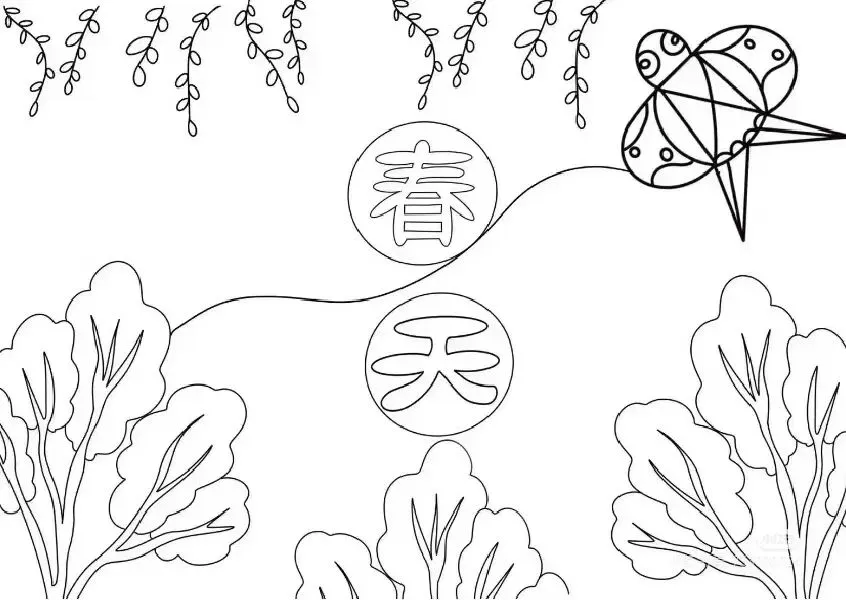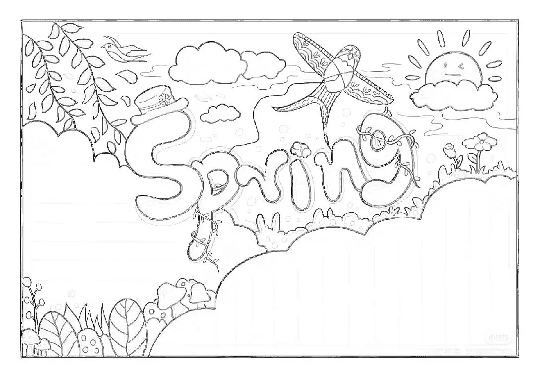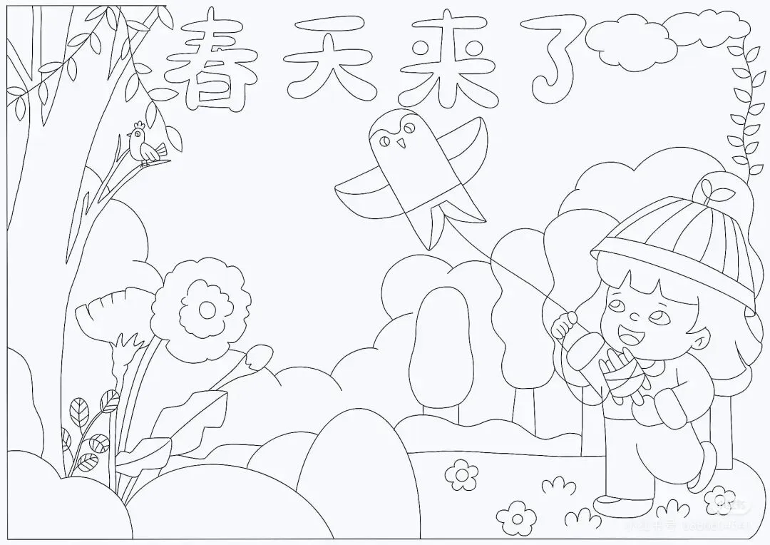 • 插图应以春天的景色和活动为主,如绽放的花朵、飞翔的小鸟、放风筝的孩子等。