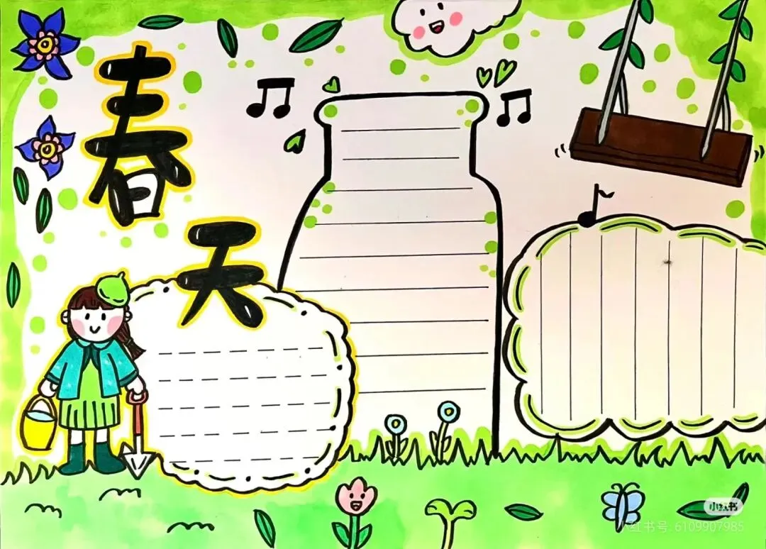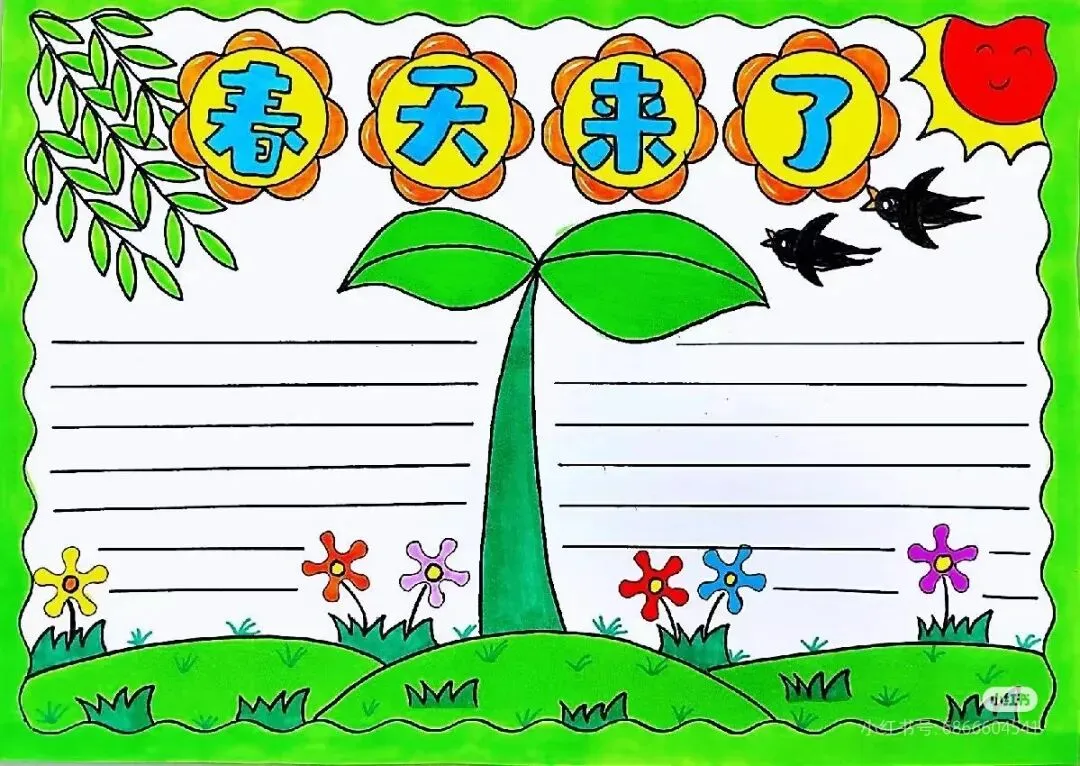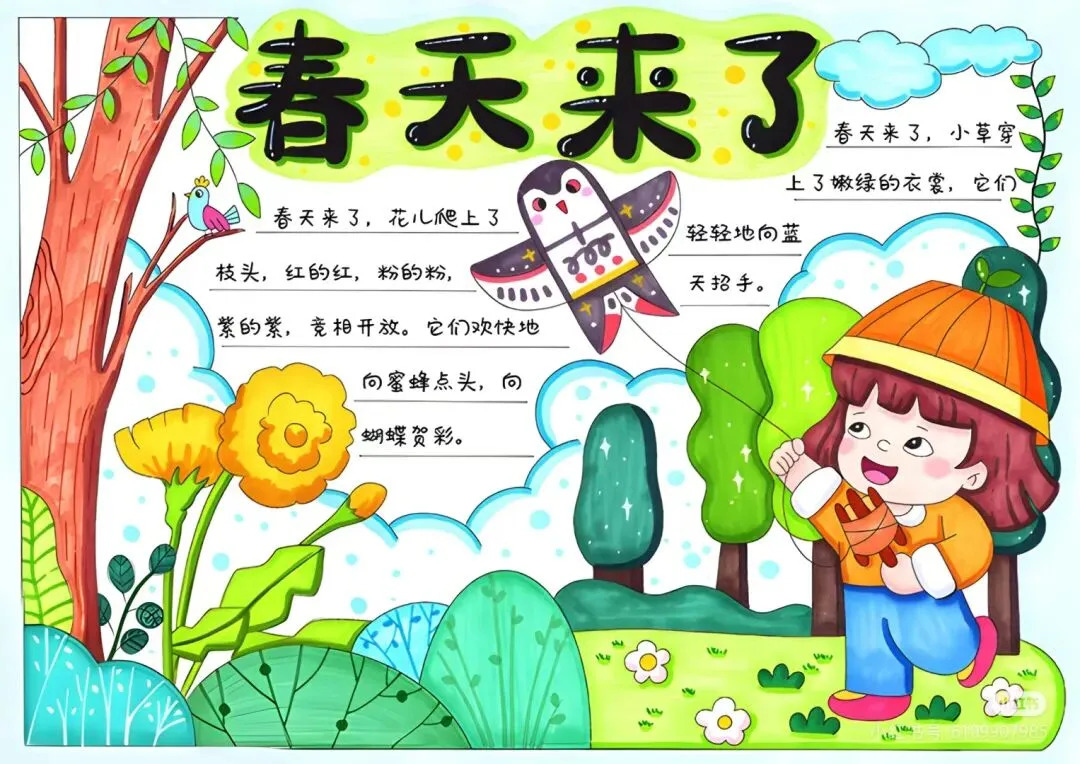 通过以上步骤,一份充满春天气息的手抄报就制作完成了。它不仅是一份作品,更是一份对春天的热爱和赞美。在制作过程中,我们不仅可以锻炼自己的绘画和写作能力,还能更加深入地理解和感受春天的美好。